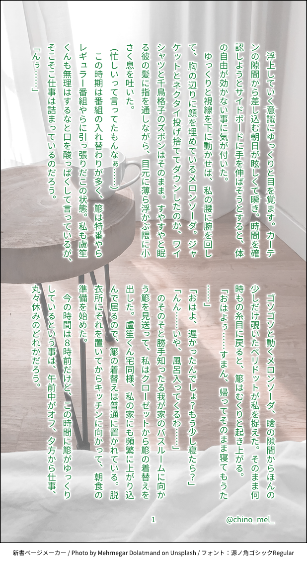 chino¨☆quiet followREHABILI🎋と休みの日の朝 #hpmi夢 #hpmiプラス hpmiPlus #白膠木簓夢 theDreamOfWhiteRubber show all(+2 images) Tap to full screen (size:618x1132).Repost is prohibited Let's send reactions! freqpopularsnackothersPayment processing Replies from the creator Follow creator you care about!☆quiet follow chino¨REHABILI🎋と休みの日の朝 3 chino¨REHABILIⓂ️💿時代の🎋💤ちゃんにヤキモチ妬く話https://poipiku.com/3636919/11760062.htmlの続きです。 2 chino¨REHABILIⓂ️💿時代の🎋にナンパされて出会う話。🎋とはイケブクロで出会ってオオサカで再会したいという夢。オオサカで再会する続きも途中まで書いてます。コミカライズD.H&B.A.Tしか読んで無いので諸々捏造。筆者は関西人では無いので、関西弁でおかしい所があっても薄目で見て下さい。リアクションいつもありがとうございます!励みになります! 3 chino¨REHABILIライブグッズの上裸に動揺した話 🎋 2 chino¨REHABILI🎋が仕事の事で落ち込んでる彼女を慰める話 3 chino¨REHABILI🎤夢忙しい🐰と彼女とそれに構う🐴 3 related works めぐりやDOODLE違法🎤で幼児化した2️⃣くんと🌸ちゃんのらくがき sippoku_suiPROGRESS色のイメージが、全然湧かない。 めぐりやDOODLEデート中に2️⃣の友達と遭遇した2️⃣と🌸ちゃんのらくがき 双葉立葵DONE山田にあげるつもりだった。ということです。バレンタインデーに気になる子から紙袋を貰う二郎の話。バレンタインデー当日には間に合わなかったよ…… 3943 めぐりやDONE2️⃣と🌸(創作固定夢主)バレンタインっぽいイラスト。 めぐりやDOODLE洗脳されて中👑区堕ちした🌸ちゃんと再会した2️⃣くんのらくがき。 2 椎瑠(しいる)DONE左馬刻と同じピアス開けたかったDJの話。 771 sippoku_suiPROGRESSぱんぱかぱーーん、ま、こいつが目立てば、よし。 ななのへDONE🎤夢小説 / 🐴🦈 4 recommended works nokibi_akiDONEお揃いのヘルメット 5 sippoku_suiDOODLE夢オンラインイベントお題の「食欲」。夢主、お前はガマガエルかペリカンか。そして、ごめん、簓…。 Saku_v_seaMENU📚先生が忘年会に参加する話。頭空っぽにして読んでください。 4804 椎瑠(しいる)DONEテニスイベで情緒乱されていたら文が出来ました。(まだ後編、始まってもいない)めちゃくちゃゲーム楽しんでるだけ。妬いたらゲームでも容赦しない左馬刻様。うちの見習いDJに、漸く名前が付きました。「奏向」と書いて「かなた」と読みます。 1715 ななのへDOODLE🎋🐳 11 りさこREHABILIリハビリで1⃣を描きつつ初夢絵 kanauo_DOODLE「夢野先生に踏まれたいです😆🫰」って言ったら予想以上のが来た夢絵 mezumasaDOODLE[R18] mob/sasaraモブ / 簓18+? [yes/no] 抹茶鲸鱼蛋糕DOODLE小纯以为要发生什么了,结果只是亲亲了一晚上,事后还被巴巴告知真正的亲吻是要那样的…… 3202