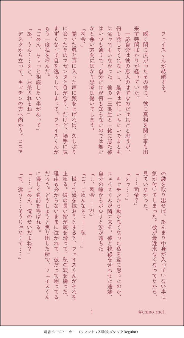 chino¨☆quiet followREHABILIフェイ司ウェディングイベの内容を含みます噂に振り回されて不安になる司令とフェイスの話 show all(+1 images) Tap to full screen (size:618x1132).Repost is prohibited Let's send reactions! freqpopularsnackothersPayment processing Replies from the creator Follow creator you care about!☆quiet follow chino¨REHABILI🎋と休みの日の朝 3 chino¨REHABILIⓂ️💿時代の🎋💤ちゃんにヤキモチ妬く話https://poipiku.com/3636919/11760062.htmlの続きです。 2 chino¨REHABILIⓂ️💿時代の🎋にナンパされて出会う話。🎋とはイケブクロで出会ってオオサカで再会したいという夢。オオサカで再会する続きも途中まで書いてます。コミカライズD.H&B.A.Tしか読んで無いので諸々捏造。筆者は関西人では無いので、関西弁でおかしい所があっても薄目で見て下さい。リアクションいつもありがとうございます!励みになります! 3 chino¨REHABILIライブグッズの上裸に動揺した話 🎋 2 chino¨REHABILI🎋が仕事の事で落ち込んでる彼女を慰める話 3 chino¨REHABILI🎤夢忙しい🐰と彼女とそれに構う🐴 3