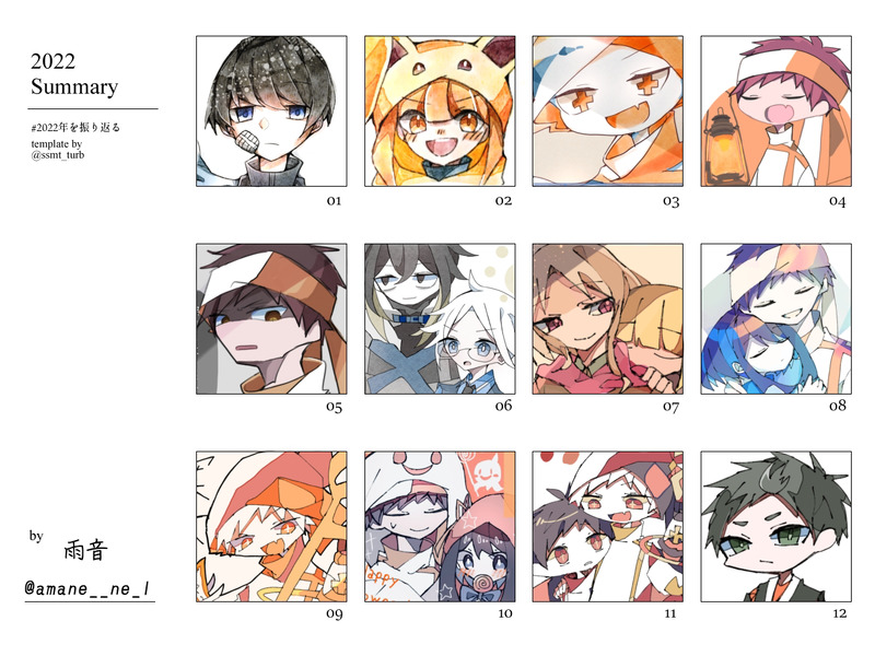 昨年は寒色多めで今年は暖色多め。あと、2人の絵を描くことが増えた。