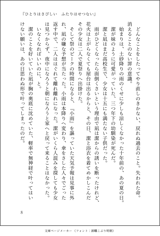 kiji1001ta☆quiet followDONE両思いで身体も繋げているはずなのに、isgの心を手に入れることは叶わないngの話。(3/3) show all(+5 images) Tap to full screen (size:630x928).Repost is prohibited Let's send reactions! freqpopularsnackothersPayment processing Replies from the creator Follow creator you care about!☆quiet follow kiji1001taDONE仲直りした二人がイチャついてる話 (3/3) 6223 kiji1001taDONEngの告白をなかったことにしたズルいisgと諦めの悪いngの話。 (4/4) 11 kiji1001taDONE両思いで身体も繋げているはずなのに、isgの心を手に入れることは叶わないngの話。(3/3) 6 kiji1001taDONEngis/『誰もがかかった世界の呪い(下)』(9/9) 生まれて初めて嫉妬したngがisgと喧嘩して盛大に仲直りをする話。 11 kiji1001taDONEngis/『ばかになっちゃおうよ (中)』(5/5) ngのキスを拒んで逃げてしまったisgが、色々と勘違いした末に勇気を出す話。(※下ネタがあったりするので途中からポイピクに投げてます) 10 kiji1001taDONEngis/『ばかになっちゃおうよ (上)』(3/3)isgに突然キスを拒まれて逃げられてしまったngが、色々と勘違いした末に頑張る話。(※直接的ではないですが若干下ネタです) 7
