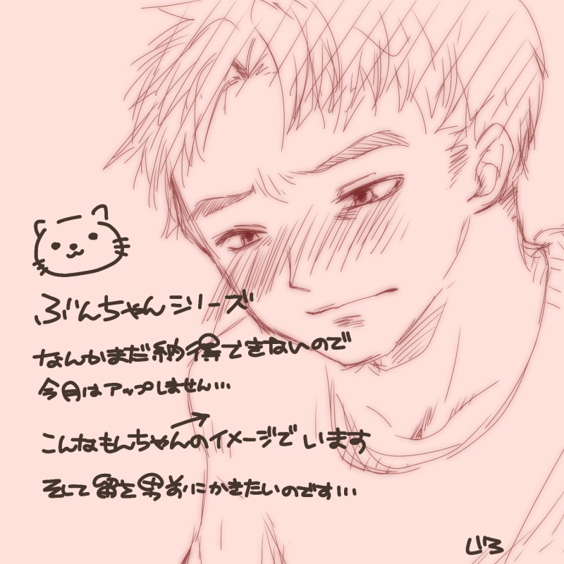 じろ26☆quiet followDOODLE※現パロうーん…となってますうーん… Tap to full screen (size:1500x1500).Repost is prohibited Let's send reactions! freqpopularsnackothersPayment processing Replies from the creator Follow creator you care about!☆quiet follow じろ26DONE温泉卓球楽しんで!🏓 じろ26PROGRESS諏訪さんと🏓ここからどう塗り進めていけばよいのか…(遠い目) じろ26MOURNINGNG?いいえ、結果オーライ!!迅遊ちゃん。えちちはかけませんすみません。が、えちちそうな単語を…。恥ずかしくなったら消しますのでご容赦を…。 6 じろ26MAIKINGかげゆ未満これもなかなか続きが描けないのでまずこちらに… じろ26DONE遅れちゃったけど潮江文次郎の日!色んなもんちゃかわいいよ!!!何がしたかったのか途中でわからなくなってしまった…けどもんちゃの日は何とか仕上げたかったので供養! じろ26DONE現パロ留文(やっとできた)猫目線ぶんちゃんシリーズ5「留ともんじろうが嬉しいなら俺も」「そういえば、仙蔵たちは帰れたのかな。すごい雨だったけど…。」「そうだな。それより、今日は一緒の布団で寝るか?」「無理だろ。(狭すぎ)」やっとできました…色んな意味で…。かっこいい留は居るようで居ません。甘々あまーです。色々許せる方のみもしよろしければ…。これあと少し続くんですよ。← 15 recommended works harushika.のアレMOURNING前に上げたやつの迅遊ちゃんの差分が実はあったので投稿テストを兼ねて、ぽーい! 2 しお🧂PROGRESSワートリ初描きの迅遊ちゃん(ねこ)ラッフー しお🧂SPUR MEバレンタイ迅遊ちゃん予定!これ含めてラフが10個以上あるので今回は尻叩き…ラフだけが増えてく始末…ちなみに後ろのスタンプは自作٩( 'ω' )و もうちょいバリエーション増やしたいので支部にまとめてあげる 伊国.DONE紆余曲折あって腹パンに付き合ってくれる好10のモブキィ(俺キィ) O.teeeMAIKING毎度の時間切れ描きかけでおわり〜!です! kingyo_candyDOODLE自機♀のちょっとすけべなやつ18↑? 2 ムウ👑PAST今までのくそカエたちpass : 🪑の名前 46 hdknDOODLEスパスタ#064で、テンプラ騎士団たちに「竜族!やべえ!」「やるなら本気でいかねえと…!(まん太に対して2人が捨て身の臨戦態勢)」と(意訳)ガチで恐れられたまん太と、「(まん太のバックにゃ)もっとやべえのが二人いんだぞ」とまん太側に葉とアンナさんがいるのを恐れられたことにキャッキャして描きました。まん太がすげーーー強キャラとして恐れらている!超新感覚!! モンフレ(モンスターフレンド)夫婦!!好き 3 雪印❄️☕MEMOバルディ先生の創作人物のプロフ更新🥰創作BL注意⚠️ 4