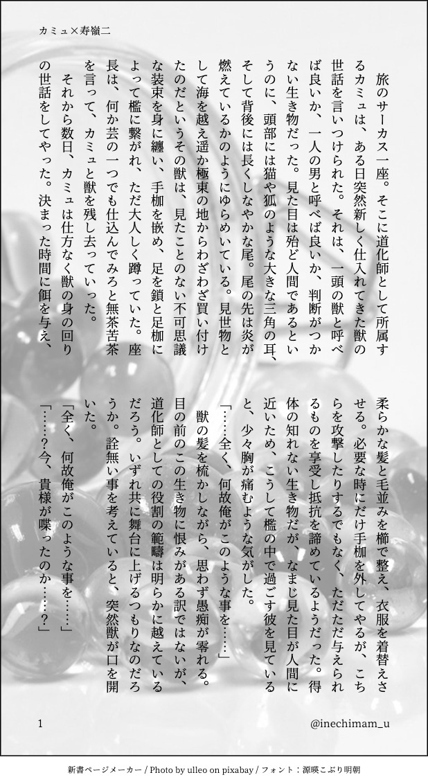 inechimam_u☆quiet followMOURNING以前に前半部分を乗せた道化師×幻想獣のカミュ嶺。書いてるうちに自分でも何これぇになってきたので供養。本当に意味わかんないけど許してください!!!!!!!!! #カミュ嶺 camuPeak show all(+6 images) Tap to full screen (size:618x1132).Repost is prohibited Let's send reactions! freqpopularsnackothersPayment processing Replies from the creator Follow creator you care about!☆quiet follow inechimam_uMOURNING以前に前半部分を乗せた道化師×幻想獣のカミュ嶺。書いてるうちに自分でも何これぇになってきたので供養。本当に意味わかんないけど許してください!!!!!!!!! 7 related works Hana_41_DONE【R18】type sweet「𝐂𝐋𝐎𝐒𝐄」相手の身体の1番柔らかい場所を触らなければ出られない部屋。まずは甘々なカミュ嶺。全p11。 11 Hana_41_DONER18「浮」カミュ嶺 6 𝐇𝐚𝐧𝐚INFO「CAKE」ぼくらはサンタさん。※ASドラマCD派生、パティシエのカミュ×保育士の嶺二の小説です。クリスマスですね。 5 𝐇𝐚𝐧𝐚INFO「溶ける指先、交わる体温。」2022.12.07 キラキスアドベントカレンダー カミュ嶺 えんろDOODLEシャニライのカミュ嶺イベント告知の時点から死ぬほど嬉しかったのですが(言って来なかっただけでカミュ嶺すごい好きだった)イベストの破壊力が想像の遥か上を超えて行って今宇宙軌道に乗ったところです Hana_41_DONE「choice」再掲。#キラキス #カミュ嶺 #R18 22 𝐇𝐚𝐧𝐚INFOめりーくりすます 12月24日 カミュ嶺「むこうにお菓子たくさんあるよ、いかないの?」っていう嶺二の手をつかまえながら、目の前にお前がいるというのにか?という顔のみゅ。 2 Hana_41_DONE【再掲】「我慢」p1661kgの嶺二が短期間で64→54kgになっちゃった話p13からR18 4 みつき💐🚿DONEキラキスデイリーメーカーからお題お借りしました🥝🌃✨ (19:09更新)・甘えたい気分のれいちゃんと声が聞きたいミューちゃんがキスをしています。・我慢しているれいちゃんとひそかにごきげんなミューちゃんがキスをしています。#キラkiraDailyキス #shindanmakerカミュ嶺お好きな方はよろしくお願いいたします✨キスはこのあとするとおもいます。pass⇒18歳以上ですか? 7 recommended works えんろDOODLEシャニライのカミュ嶺イベント告知の時点から死ぬほど嬉しかったのですが(言って来なかっただけでカミュ嶺すごい好きだった)イベストの破壊力が想像の遥か上を超えて行って今宇宙軌道に乗ったところです Hana_41_DONE【再掲】「我慢」p1661kgの嶺二が短期間で64→54kgになっちゃった話p13からR18 4 Hana_41_DONER18「浮」カミュ嶺 6 Hana_41_DONE【R18】type sweet「𝐂𝐋𝐎𝐒𝐄」相手の身体の1番柔らかい場所を触らなければ出られない部屋。まずは甘々なカミュ嶺。全p11。 11 𝐇𝐚𝐧𝐚INFO「CAKE」ぼくらはサンタさん。※ASドラマCD派生、パティシエのカミュ×保育士の嶺二の小説です。クリスマスですね。 5 はるしかDONE京関いちゃいちゃ「見惚れる」おてて編 3 遊び人DOODLEすまない、手拭いを取ってくれないだろうか?鍛錬で汗をかいてしまってな...黒インナー胸チラ陛下cha....という無自覚skb... 3 白ゲコ(aktkg)DONEサイホーン irusu_aDOODLER-18(※18歳未満の閲覧はご遠慮ください)レイチュリ🛁🦚 気持ちよくて意地張ってもっと泣かされる🦚雑落書き、何でも許せる人向けパスワードはツイッターをフォローで表示される私の誕生日PW:my birthday 3