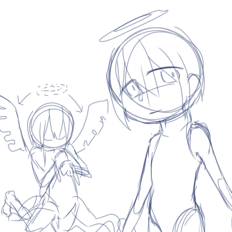 ちょっと前に夢に出てきた天使を書き加えて創作することに( ˙꒳​˙ )輪が羽に変わる感じでした