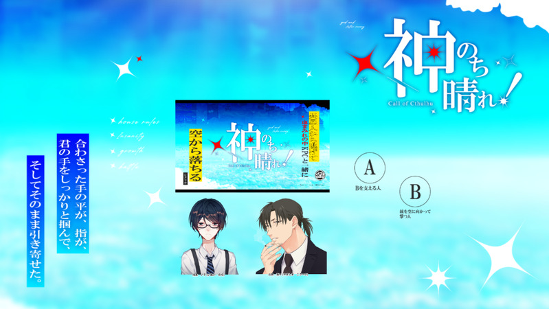 とむやんくん☆こそフォロネタバレクトゥルフ神話TRPG「神のち晴れ!」KP:tom.PL:夕陰さんお寿司食べたあとにドタバタシナリオ行ってきた!この空気感が久々で最高でした!!山島班長大好き!! タップで全画面(原寸:1384x779)無断転載禁止 リアクションをたくさん送って応援しよう! よく使う人気おやつその他支払処理中 作者からのリプライ 気になる人をどんどんフォローしよう!☆こそフォロ とむやんくんネタバレクトゥルフ神話TRPG「神のち晴れ!」KP:tom.PL:夕陰さんお寿司食べたあとにドタバタシナリオ行ってきた!この空気感が久々で最高でした!!山島班長大好き!! とむやんくんメモクトゥルフ神話TRPG「お寿司食べたい」KP:夕陰PL:tom.デス使ぶりに山島さんと遊んできた!いっぱいお寿司食べた!SAN値いっぱい回復してHAPPY☆ とむやんくんメモクトゥルフ神話TRPG「奇奇怪怪同好会chapter2」KP:tom.PL:reto、木原さん、はるあきさんエンドAにて終了!!Chapter1と同じご愉快なメンバーで遊んでいただきました👍2つ目の依頼ということもあり、前回よりも仲が良くなったんじゃないかなと思います🥰初回しでかなりグダグダになってしまいましたが、全生還で戻ってきてくれて良かった…。 とむやんくんメモクトゥルフ神話TRPG「傀逅」KP:tom.PL:ふたばさん、樹夜さん無事に全生還しました😭本当に良かった…。長時間セッションでしたが、いっぱい悩んで進んでいく姿を見て、ずっと「頑張れ…」と応援しておりました📣✊🏻大切な人とのRPが本当に楽しくて、何回か調子に乗りました、すみません。それくらいとっても楽しかったです✨ とむやんくんメモクトゥルフ神話TRPG「奇奇怪怪同好会chapter1」KP:tom.PL:reto、木原さん、はるあきさんエンドAにて終了!!この同好会入っていなかったら絶対に出会うことの無さそうな3人が、わちゃわちゃしたり協力したりするのめちゃくちゃ面白かった🤣🤣chapter2も引き続き来ていただけるようなので楽しみ!! とむやんくんメモクトゥルフ神話TRPG「永劫捨象ぺトリコール」KP:tom.PL:夕陰さんロストにて終了!色々とお話しながら、チェレンくんについて色々と知れて嬉しかったです😊素敵な芸術家さんだったなぁ…。
