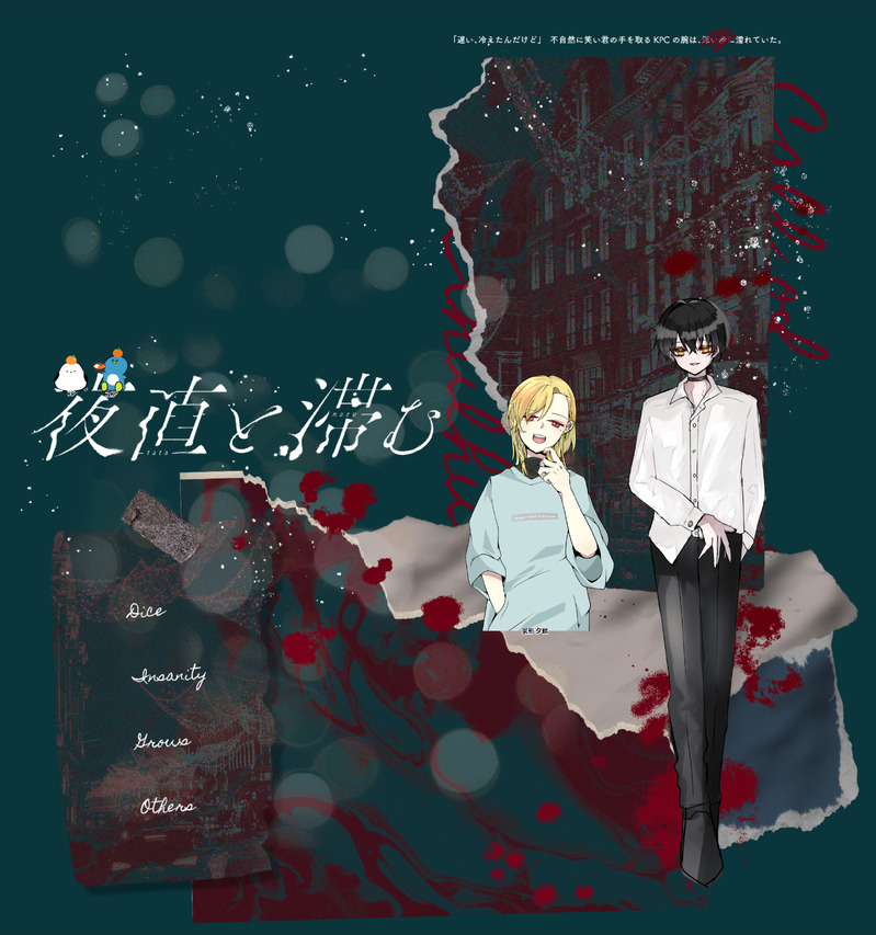 ユア@TRPG☆quiet followMEMOCoC『夜直と滞む』KP:霜月KPC:戸波 ナツメPL:ユアPC:宗形 夕鶴END -B両生還 2024/12/31 ##卓報告 ##PL ##2024/12 Tap to full screen (size:2474x2640).Repost is prohibited Let's send reactions! freqpopularsnackothersPayment processing Replies from the creator Follow creator you care about!☆quiet follow ユア@TRPGMEMOCoC『HITCH HIKE RUNWAY』KP:ユアKPC:四垂 晶PL:みのPC:相良 ねむEND-A両生還2025/1/14 ユア@TRPGMEMOCoC『テレパシークレット』KP:ユアKPC:寅丸 空楼PL:霜月PC:千代松 志鶴 エンド-A両生還2025/1/10 ユア@TRPGMEMOCoC『熱の行く先』KP:ユアKPC:月魄PL:霜月PC:ヒナセ両生還2025/1/4 ユア@TRPGMEMOCoC『夜直と滞む』KP:霜月KPC:戸波 ナツメPL:ユアPC:宗形 夕鶴END -B両生還 2024/12/31 ユア@TRPGMEMOCoC『とろどろ』KP:ユアKPC:月魄PL:霜月PC:ヒナセエンド1両生還2024/12/31 ユア@TRPGMEMOCoC『ALita』KP:ゆきよい PLPC1:硲 祈梟 / 霜月PC2:鬼頭 茉莉 / ユア1生還1ロスト2024/12/20~2024/12/30 recommended works 山月江风DOODLE吃点恋爱男高,,,生病(但还是do了)呵呵对不起我的xp。。。 6 りずむ✩DOODLEあそんでるクビフウ ケルトン猫DOODLE无极娟肖娟3p 2 Cameron_NVHDOODLEyes 2 なかぢょDOODLEアニメ見始めた、おもろ~ みどりDOODLE忍者パロヤマちゃん⛰️潜入、聞き込み絶対上手いだろ…。極力戦闘は避けるけどちゃんと強い。 牛ハラミDONEメリクリ🎄 2 yudo_hurssuSPOILER静テロ現行未通過❌買ったグッズ!にこにこ。ずっとランダムポスカの組み合わせで爆笑してる。 2.3DOODLE凯伽 感觉互通互通指fjb和受方感觉上互通) 2