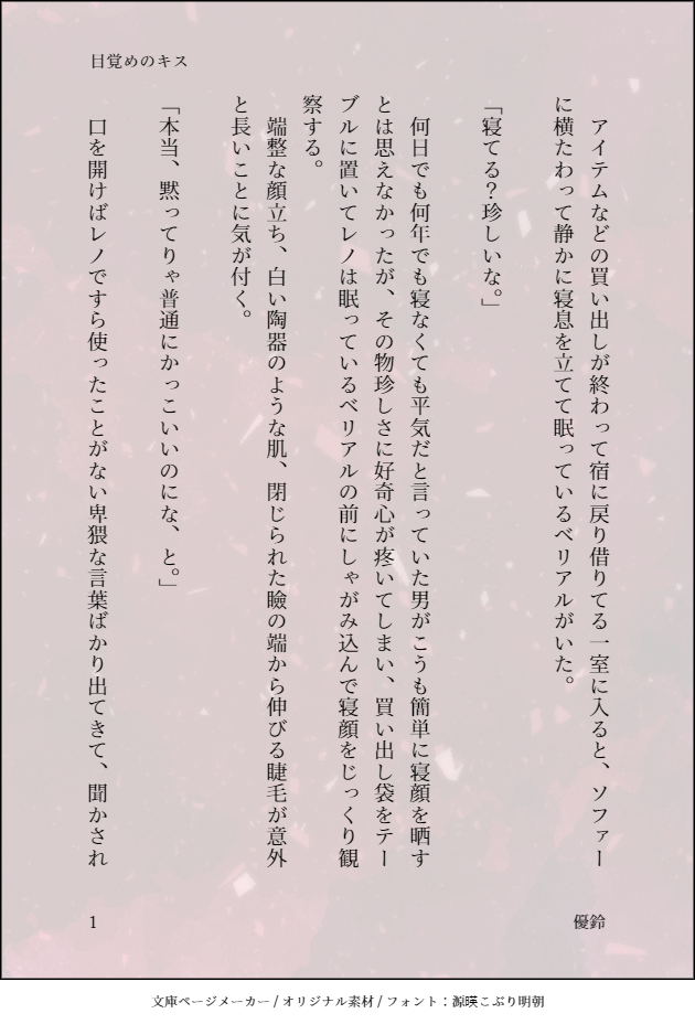 ゆうりん☆quiet followDONE【目覚めのキス】※クロスオーバー注意※「本当、黙ってりゃ普通にかっこいいのにな、と。」ベリアルの顔は嫌いじゃないレノ(ベリレノ) #グラブル Granblue #FF7 #ベリアル belial #レノ leino #ベリレノ bellireno show all(+5 images) Tap to full screen (size:630x928).Repost is prohibited Let's send reactions! freqpopularsnackothersPayment processing Replies from the creator Follow creator you care about!☆quiet follow ゆうりんDOODLE不二×菊丸のSS 186 ゆうりんDONE会話してるだけの先輩後輩なザクレノ 670 ゆうりんDOODLEメイドの日に遅刻したレノ×ルード(レノルド)ほんの少こーしえろ注意。 301 ゆうりんDONE春のザクレノ現パロの続きです。レノは桜の精。ザックスは大学1年生。 513 ゆうりんDONE遅ればせながら、ホワイトデー風味な短いレノルーです。 403 ゆうりんDONE春のザクレノ現パロ(某ファーストフードのCM風) 616 related works yoirkgk_hokDOODLE #グラ腐ル #ベリアル #ジークフリート #ランジクジクさん女体化とかもあるのでご注意をば。顔気に食わないのばっか集めてみた…_(┐「ε:)_今度リベンジするから!! 10 オマタDOODLE畜生ビスケット(2枚) 2 toumatoossanDOODLEサリとベリ 藍葉_PROGRESSなかなかまとまった時間がとれない 2 toumatoossanDOODLEベリカラーパックセット fishuDOODLEmikuxberry アンケェェェだよPROGRESSこれは達する 2 toumatoossanDOODLE toumatoossanDOODLEハッピーバレンタイン😈 recommended works らいむDONEFFⅦ 22周年おめでとうございます(*´∨`*)何とか間に合いました✨ mak1baoh_goDOODLEFF7ティファ下書き。 ゆうりんDONE【ただ声が聞きたくて】この衝動を抑える方法が分からなかった。ザックス×レノ(ザクレノ)です。 4 ちずるPASTFF過去絵2010年5月~2015年1月まとめ#FF #FF4 #FF5 #FF6 #FF7 #FF9 #FF12 19 ゆうりんDONE【重なる2つの鼓動】「ザックス…ここにいるよな…?」オペラオムニア時空のザクレノです。 8 ゆうりんDONE【目覚めのキス】※クロスオーバー注意※「本当、黙ってりゃ普通にかっこいいのにな、と。」ベリアルの顔は嫌いじゃないレノ(ベリレノ) 6 elle_niyaPAST1枚目:2019年1月(絵を再開直後、初アイビス)2枚目:2020年2月3枚目:2020年4月やっぱり今年入ってから多少ではあるけど、絵柄変わったなぁ。 3 mokkePASTFF7wリメイクの続編にこのセリフあるかしらん🤔 る いDONEフォロワーさんが作らはったACクラウドを描かせてもらった。背景はクラウドのイメージに合わせて空を描いてみた。塗り過程も置いておく。 6