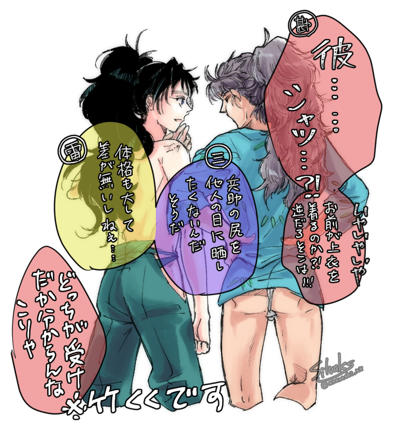 シルバクス☆quiet followDONE室町竹くく彼シャツ事情兵のお尻を守る八の袴なのであった。体格同じくらいだし、萌え袖とか裾で股間隠れる浪漫とか無さそうだよねっていう妄想。現代に兵が女体化転生したらやっとちゃんと彼シャツ出来そう。漫画と女体化絵は鍵アカ行き。 #竹くく show all(+3 images) Tap to full screen (size:982x1034).Repost is prohibited Let's send reactions! freqpopularsnackothersPayment processing Replies from the creator Follow creator you care about!☆quiet follow シルバクスINFOリクエスト貰って描いた漫画の一部抜粋。あまりに全裸なので鍵アカ行き。その内ログが溜まったら支部にまとめるかも。 シルバクスDONE室町竹くく彼シャツ事情兵のお尻を守る八の袴なのであった。体格同じくらいだし、萌え袖とか裾で股間隠れる浪漫とか無さそうだよねっていう妄想。現代に兵が女体化転生したらやっとちゃんと彼シャツ出来そう。漫画と女体化絵は鍵アカ行き。 4 シルバクスMOURNING全体像は鍵アカ行きだけど、顔が満足に描けたから見てくれ 3 シルバクスDONEリクエストお題の「現パロ竹くくの夏休み」ちょっと切ないお盆の一幕 2 シルバクスDONE蚊が 4 シルバクスDONE冬の五年生プチ漫画 8 related works ぼた餅TRAINING四十八手其ノ二十一 茶臼のばしジョッキーククチ⚠️現パロ ぼた餅TRAININGくちびるの境目がむずかしい竹くく…むかーし昔の漫画は口のところ描いてなかったよね(偏見)⚠️現パロ カコ@ポイピクDOODLE竹くく/ふんわり雰囲気マンガせりふはありません 4 ぼた餅TRAINING四十八手 其の六 立ち花菱竹くく⚠️現パロやる気はあるんです… SPR1NG_cherryDOODLE現パロ社会人竹くくパスワード 18↑ y/n 3 ぼた餅TRAINING四十八手 其ノ十 鳴門⚠️現パロ難しいポーズの参考とかで自分の変なポーズの画像が知らん間に溜まっていったりするおそろしさ けろかDOODLEにんたま🎋×くのたま📛🎀のつづき妊娠ネタ注意! 2 サバヲ🐟DONE商人八左ヱ門と貴族兵助のパラレルワールドの初夜(エロパート)エロパートオンリーなのでTwitterの全年齢部分を先に読まないと話が繋がりませんパスワードは18歳以上ですか?にyes/noで 5 おはま@ohama_0809DOODLE竹くく※肌色注意