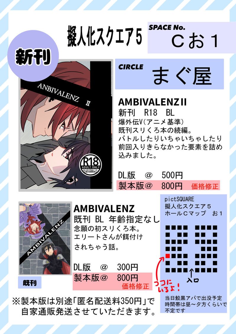 ksg_mn☆quiet followMENU6月26日のpictSQUAR「擬人化スクエア第5回(#ぎじスク)」に爆外伝V擬人化で参加します!スペースは「Cホール:お1」を頂いています。新刊あります!※18禁のためご注意ください店舗はpictSPACE(https://pictspace.net/mklly) #擬人化 Humanization #二次創作 secondaryCreation #スリくろ pickpocket #鮫黒 #BL #腐向け Rot Tap to full screen (size:1357x1920).Repost is prohibited Let's send reactions! freqpopularsnackothersPayment processing Replies from the creator Follow creator you care about!☆quiet follow ksg_mnMENU6月26日、pictSQUARE「擬人化スクエア5」の新刊R18スリくろ本「AMBIVALENZⅡ」。前作の続きで、よりいちゃいちゃさせました。店舗はpictSPACE、6月26日に公開頒布します。https://pictspace.net/mklly 6 ksg_mnMENUスリくろ本の既刊サンプル。エリートさんがわるい人に餌付けされる話。6月26日にpictSPACEにてDL、製本版再頒布いたします。→https://pictspace.net/mklly 5 ksg_mnMENU6月26日のpictSQUAR「擬人化スクエア第5回(#ぎじスク)」に爆外伝V擬人化で参加します!スペースは「Cホール:お1」を頂いています。新刊あります!※18禁のためご注意ください店舗はpictSPACE(https://pictspace.net/mklly) related works 咖哩なんぽ(アンポ)PASTFF6 ティナ書き損じクラフト封筒の裏に描いた絵。大人の鉛筆の赤と黒で描きました😃 なのはなDOODLE現在の最推しです。 あずき@本丸TRAINING #刀剣乱舞 #二次創作 #薬研藤四郎悲しげな薬研さん mosukeDOODLE #二次創作ほぼあむあとあかいさんとウイスキー 7 SekisakumaouPROGRESS細いペン忘れた#二次創作 #モンはれ みろくPROGRESSBURLESQUEのアリ ちきんDOODLEうろ覚えケンペルさん 何枚か増えるはずだったけど結局手が遅くて1枚しか生まれなかった x_oねむくんPROGRESSノリで塗るの楽しいけど実際シワッシワすぎる かなうDONEただ心ちゃんとプロデューサーが話してるだけ。アイチュウを始めたけど心ちゃんのストイックで可愛くてどこまでもアイドルなところが大好き。※CPではないつもりだけど柚希ちゃんいます。 4 recommended works つくし/まるおDOODLE #ヒロアカ #腐向け #轟焦凍 #モブ轟 ヴィオレDONE🎍HAPPY NEW YEAR 2019🎍(版権擬人化:動物番長、pkg)あけましておめでとうございます!今年もよろしくお願いします!1枚目は今年の、2枚目は去年のものになります 2 ニワノDOODLE先日『推しのフィギュアが傾いてきた』絵を投稿したんですが、今日帰ったらこんな感じになってました。 yinzwiDOODLE全部妄想だよ重ねて細切れ勘弁な!小説貰って嬉しすぎたので好きなとこ描かせてもらった!雰囲気全然でなくてすまない!! 4 千三百一DONEメモマメイカ(82)「キョゼツ」 上の田んぼPROGRESS前日カウントダウン絵を描くの巻きです( ..)φ読み切り32p描かせていただいたDK×BLアンソロジー(https://buff.ly/2x8jBIN)が明日発売になりますどきどき。これからもちょこちょこ2人の小ネタを描いていくので良かったら見守っていただけると嬉しいですヽ(^ω^)ノ 3 minaDOODLE🍒まほ4巻アラブ特典の妄想落書き(笑)黒沢石油王×スパイ安達忍び込む時は、目立たない服装で侵入 きりんDONEバドさま シウト@のんびりDONE危ないにおいしかしなかったからずっと避けてたのに軽率にアニメ見てハマりました😇どひふかわいいなあ⋯