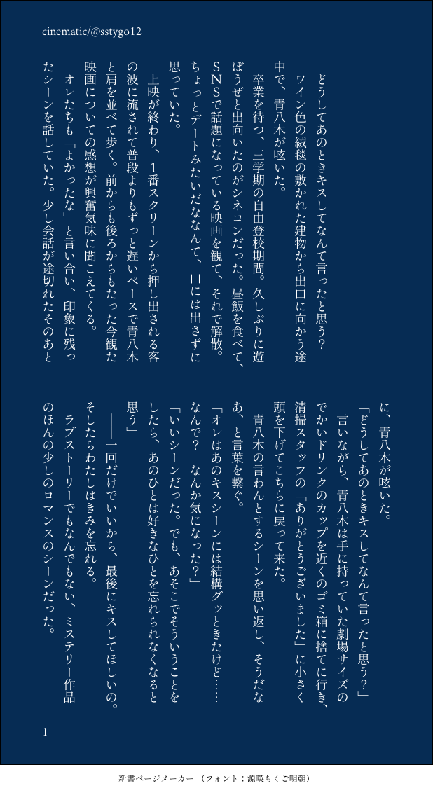 sstygo12☆quiet followDOODLE深夜に30分公開したけど恥ずかしくなって下げたもの、ここに置いておきます やっぱり恥ずかしい、空気感が show all(+3 images) Tap to full screen (size:618x1132).Repost is prohibited Let's send reactions! freqpopularsnackothersPayment processing Replies from the creator Follow creator you care about!☆quiet follow sstygo12INFO以前書いたSSを元にいりじさんに漫画を描いていただきました!すぐに見られるところに置いておきたくて掲載許可をいただきました🙏本当にありがとうございます……!!!※「らくがき」とか遜った選択肢ばかりで仕方なく「お知らせ」を選んでしまいましたがカテゴリは「宝物」です元SS「恋煩い」https://privatter.me/page/658d1a80f0b16 4 sstygo12TRAINING 4 sstygo12TRAINING練習このあとまだ続きを書いてたけど、尺がもっと欲しくなったので後略 何が何だかわからなくてすみません…… sstygo12TRAINING練習 悩みすぎたのでちょっと妥協した 2 sstygo12TRAINING練習 2 sstygo12TRAININGとにかく文章そのものを書く練習 つづきません