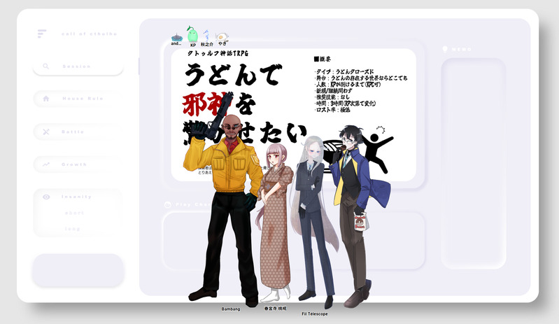 andantino☆こそフォロお知らせCoC「うどんで邪神を驚かせたい」KP:おすしさん/フィルくんPL:秋さん/バンバンさん andante/桃椛 かたやきさん/エルヴィスくんノストラ自陣でうどん作って来た!見ろ俺の大和魂~~~~~!!!!!相変わらず仲良しでニコニコする 出目は変でした タップで全画面(原寸:2193x1270)無断転載禁止 リアクションをたくさん送って応援しよう! よく使う人気おやつその他支払処理中 作者からのリプライ 気になる人をどんどんフォローしよう!☆こそフォロ andantinoお知らせCoC「群青、暴けど。」エンドA両生還KP:andanteHO1:るすりーさん/雪花 智洋HO2:はちなぎさん/東 光玖仲良く犬猿してくれてKPはニッコニコです!!!出目はおとなしいなって思ってました、前半まで。後半意味わからん荒れ方をしていましたが生還してくれてよかった!!!!! andantinoお知らせCoC「うどんで邪神を驚かせたい」KP:おすしさん/フィルくんPL:秋さん/バンバンさん andante/桃椛 かたやきさん/エルヴィスくんノストラ自陣でうどん作って来た!見ろ俺の大和魂~~~~~!!!!!相変わらず仲良しでニコニコする 出目は変でした andantinoお知らせCoC「フライパンカレーの再来2」全生還KP:そらさん/ウスズミくんPL:andante/カミトキ 白墨さん/レックスくん チハさん/ミノリちゃん可愛かった~~~~!!!!相変わらずの出目荒れですがカレーは上手に作れました!……作れました!るんるんで作りました! andantinoお知らせCoC「Wish a Cathuria」エンドA-Ex-1「希望に臨む」KP・作:andante/久城 絢乃PL:夏祈さん/浅鐘 未尋 茶椀さん/神代 紅 おすしさん/永礼 靜こゝろ自陣でウィシュリア来ていただいた!一生ご愉快出目してた!本当に嬉しいありがとうございました!!!天才ファンタジー差分を見てください!!! andantinoお知らせCoC「Z×A BATTERY!」KP:andante/雷解 春万PL:翠さん/衣縫亥 侑明トゴスマ雷×狗してきた!!!かわいいいのちでした お互いの自陣の雰囲気が結構違うことを察せられて大変笑顔になりましたね……一生聞きてぇこの話 andantinoお知らせCoC「あいつが桜に(物理的に)攫われた!?」KP:白墨さん/レックスくんPL:そらさん/ウスズミくん andante/カミトキ チハさん/ミノリちゃん昨晩行ってきた!ずっとギャク!2m越えの巨体が攫われていく姿、流石に宇宙猫になる あとまた茶番ダイスで伝説を残しました