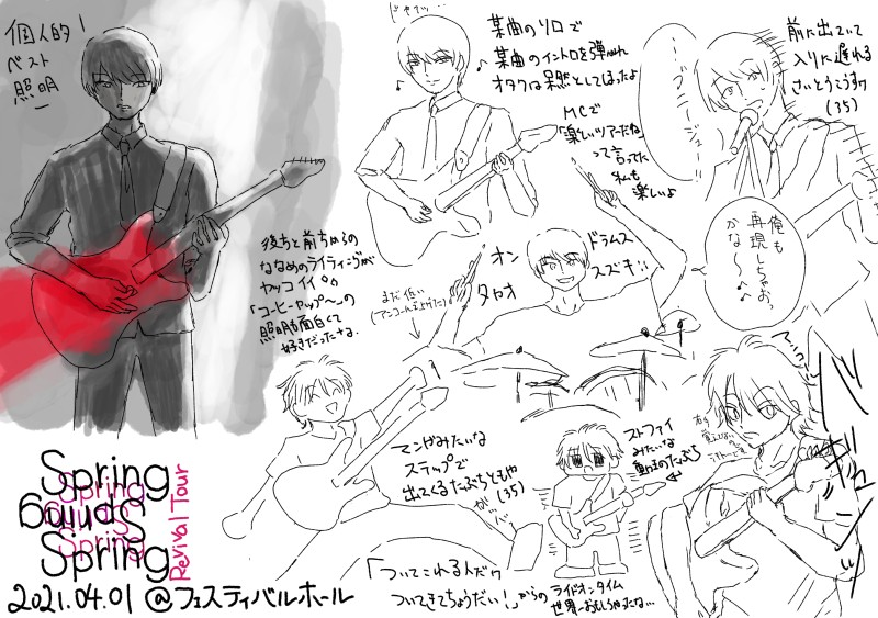 fishbashira☆quiet followDONE2021/04/01 UNISON SQUARE GARDEN「Spring Spring Spring Revival tour」@フェスティバルホール初日に行ったけど楽しかったなあデイライの途中でスロウカーブのイントロが挟まれるのはどの公演でも共通だったりするのだろうか…… #ユニゾン unison #ライブレポ liveReportage Tap to full screen (size:2894x2039).Repost is prohibited Let's send reactions! freqpopularsnackothersPayment processing Replies from the creator Follow creator you care about!☆quiet follow fishbashiraDOODLE2022/09/11 a flood of circle Tour "FUCK FOREVER"&"I'M FREE" @梅田クアトロ fishbashiraDONE2022/04/21 a flood of circle 「Tour 伝説の夜を君と」with DOSE @京都MUSE曲バレありのためワンクッション初めてのDOSE楽しかった、再始動後初対バンを見れたことに感謝限りなく今回も伝説の夜だった2枚目以降は覚書ツイートのスクショ 5 fishbashiraMOURNING2022/02/26 a flood of circle「Tour 伝説の夜を君と」@BIGCATレポとかではなく行ったよという個人的な備忘録です金髪の衝撃2枚目以降はその時のツイートのスクショhttps://www.livefans.jp/events_setlist/1372588 5 fishbashiraDONE2021/11/25 a flood of circle 「15th Anniversary Best Set Tour "FIFTHTEEN"」@UMEDA CLUB QUATRO曲バレありのためワンクッション15周年のベストセットツアー15年目でも最新が最高https://www.livefans.jp/events_setlist/1339058 fishbashiraDONE2021/09/20 a flood of circle 「KINZOKU Bat NIGHT」@京都磔磔金属バットさんとの対バンイベント絵や発言の記憶は脳内の記憶+配信で補填したものめちゃくちゃ笑ったしめちゃくちゃ楽しかったのでまた何か一緒にやってほしいなあ fishbashiraDONE2021/07/11 SATETSU presents 「マスカレードパーティ」第一部@京都紫明会館木造の文化会館でのまったりとしたアコースティックライブでしたMCがかなり多かったのでMCの記憶が多い2枚目以降のスクショはなんとなくの覚書、順番などは曖昧です 5 related works もるもっとMEMO最初の9枚は11月27日に∞ドームにて行われたトークライブ「ジャニヲーターBoyz」のライブレポです。吉本坂三次審査合格おめでとうイラストや、ジャニヲーターBoyzさんたちにプレゼントした絵も。最後2枚はバースデーこうだいさん 19 みなぽよまるDOODLE今日の日記Plastic Tree PTツアーAct.2 "トロイメライ"千葉 pinohaneDOODLEBaseBallBearライブレポ(4/19名古屋公演) HalloweenOjisanPAST2018/07/19-20 三郷市文化会館2018/09/04 神奈川県民ホール2018/11/07 CULB CITTA' 13 mkzk777SPOILERSMT渋谷 ライブレポFBさんまとめ! 4 fishbashiraDONE2021/09/20 a flood of circle 「KINZOKU Bat NIGHT」@京都磔磔金属バットさんとの対バンイベント絵や発言の記憶は脳内の記憶+配信で補填したものめちゃくちゃ笑ったしめちゃくちゃ楽しかったのでまた何か一緒にやってほしいなあ __kodakaSPOILERRADWIMPSのFOREVER IN THE DAZE TOUR 2021-2022宮城1日目行ってきましたレポ。順次書いてる 2581 fishbashiraDONE2021/04/01 UNISON SQUARE GARDEN「Spring Spring Spring Revival tour」@フェスティバルホール初日に行ったけど楽しかったなあデイライの途中でスロウカーブのイントロが挟まれるのはどの公演でも共通だったりするのだろうか…… fishbashiraDONE2021/07/11 SATETSU presents 「マスカレードパーティ」第一部@京都紫明会館木造の文化会館でのまったりとしたアコースティックライブでしたMCがかなり多かったのでMCの記憶が多い2枚目以降のスクショはなんとなくの覚書、順番などは曖昧です 5
