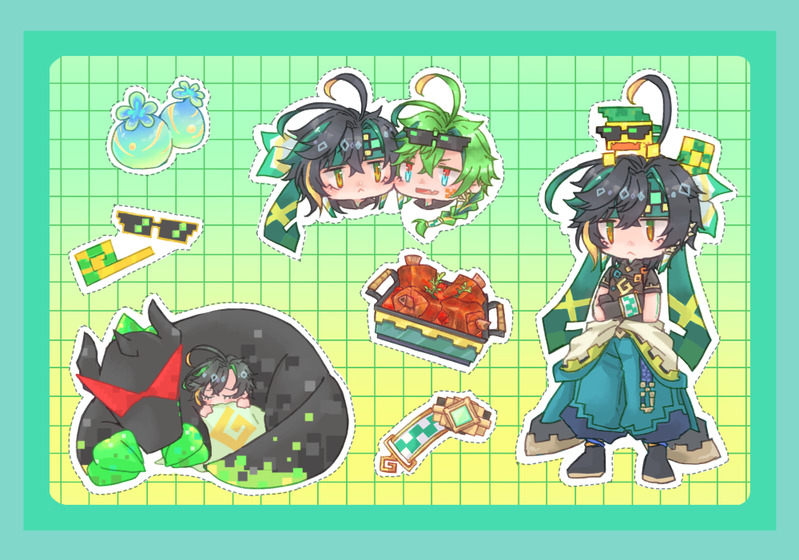 ステッカー風アハキィとサクカに描いたアハキィです。