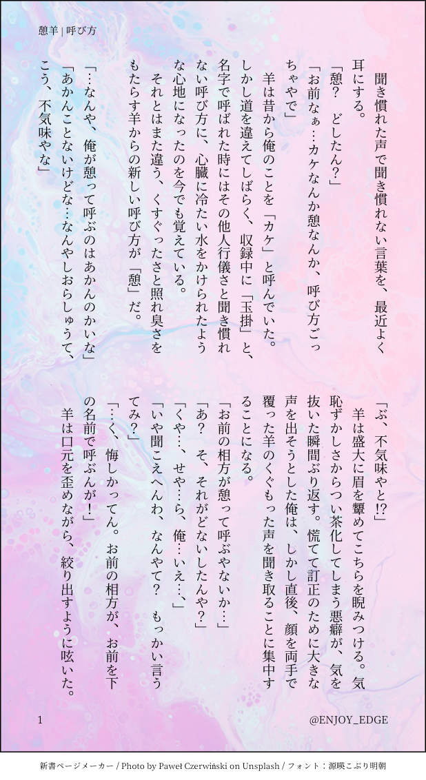 memori☆quiet followDOODLE孕緑後の憩羊二次創作※実際の憩はこんなにスマートではありません※ show all(+1 images) Tap to full screen (size:618x1132).Repost is prohibited Let's send reactions! freqpopularsnackothersPayment processing Replies from the creator Follow creator you care about!☆quiet follow memoriDONE竜胆四葉の刺青 般若面とかちゃんと自分で描いたらアホほど時間かかった…けどうまくね?刺青っぽく見えりゃいいやと思ったけどどうなんだ…前面に蛇いたらこわいけど…般若面って女性じゃないですか、なんか女性妖怪(?)的な柄が良かった。藤哉くんと出会う前は、背中の般若面見せたときに「俺のオンナ」って紹介してそう。鬼とも迷ったけどね〜…まぁほぼ鬼っしょこれは 2 memoriDOODLE煌翼まんが(ついったーの再掲) 4 memoriDOODLEぼいどなにがネタバレなのか分からんのでいちおワンクッション memoriDOODLE颯浬ゆるまんが よく寝るカピバラ 2 memoriDOODLE孕緑後の憩羊二次創作※実際の憩はこんなにスマートではありません※ 2 memoriDOODLE※馬鹿参りネタバレ※KPの説明聞いてる時に片手間に書いてたメモが可愛かった なにこれ?