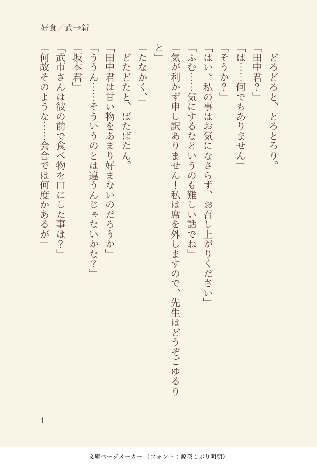 遠い昔に成人済の物書き/好きなものを好きなように書いている/自身の中での線引きが極端の為これ投下するのちょっと怖いなとなったりすると制限を掛けたり掛けなかったりする/反応を貰えたりすると調子に乗りやすいのでどんどん乗せてくれると嬉しかったりする