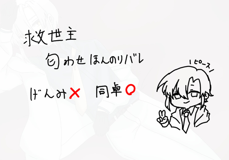 ぱら🐏☆quiet followSPOILERこの前あげたやつに気持ち程度の匂わせいれただけ※流血表現あり #救世主 saviour show all(+1 images) Tap to full screen (size:1194x834).Repost is prohibited Let's send reactions! freqpopularsnackothersPayment processing Replies from the creator Follow creator you care about!☆quiet follow ぱら🐏SPOILER⚠️膿み堕としバレ/げんみ❌ほいち落描き/曲パロ 6 ぱら🐏SPOILER一応すやゆだげんみ❌で曲パロ落書きok ぱら🐏SPOILER快刀乱魔バレ/NPCあり葉宮班その2パス→ok 5 ぱら🐏SPOILER快刀乱魔バレ/NPCあり葉宮班劇中スチルパス→ok 16 ぱら🐏SPOILERあとまつ 現行未通過❌同卓❌/KP⭕️パスワード『yes』同卓は絶対見ないでください卓通過しても見ないでください()欠片程度のNPC要素と自探索者の半分劣情 4 ぱら🐏SPOILER特にバレは無い海枯れ部屋(1、2枚目はPC達も映ってるのをお借りしてます)背景が綺麗だから入れたかっただけ 4 related works テンカーSPOILERCoC救世主 ※ちょいネタバレがあるので現行未通過× 自PC 広江路佳の立ち絵差分です。HO2 陰背負う英雄でした。ロストしたけど、良かったよ・・・・・ 7 pyo_trpgSPOILERCoC『救世主』スチル集⚠️ネタバレ注意!2陣目のエンドカードもあり 3 岩場噺SPOILERえむしおくろ救世主バレ 6 kanonn_yDONECoC「救世主」HO1 真理への背教でお邪魔します!篁 狐々菜!実は昔インセインで遊んだPCのコンバートです。設定マルっと違うのでスターシステム的な感じで!+インセインの時の立ち絵(2018年)+ネタバレ差分追加(20230327) 9 rirakkuma2530DOODLECoC『救世主』現未○ mon.卓1陣身内 #みなの救世主 YourTRPGPlayerDOODLE救世主をこじらせにこじらせまくっていっぱいイラスト描いたので供養。自分の心が少しでも救われますようにという完全なエゴです。がっつりネタバレあります。password:yes 10 coropo266SPOILERTRPG救世主プレイさせていただきました!!厚めの小説読んだ後みたいな、映画観た後みたいな気持ちです。そこに参加していたことが不思議で嬉しい。そして切ない。世界を作ってくれたろくさん。一緒に旅してくれたみんとこさん、よりさん。守護神ひろさん。作者の超高音さん。感謝感謝です。 5 coropo266SPOILER救世主をプレイしてからずっと鮫島零一の過去について妄想してました。彼のあの性格が出来上がるまでにどんなことがあったのか。誰も信じない、笑顔の仮面の下の孤独を形づくったものは何か。というのを文字化してみました。完全に捏造です。タイトル「鮫島零一という男」※不愉快に感じる方がいましたらメッセください。消します! 2 coropo266SPOILER救世主をプレイしてからずっと鮫島零一の過去について妄想してました②2週目では鮫島さんには幸せになってもらわないと困るで委員会です。完全に捏造です。タイトル「鮫島零一という男②」※不愉快に感じる方がいましたらメッセください。消します! 4 recommended works trpg_rn_MOURNING膿み堕とし現行未通過❌HO壱を受け取ったばかりの人間の幻覚全身全霊を上げて誑かしてきます。〜King Gnu「千両役者」 横田ひかるDONE 6 カウダDOODLE救世主 ネタバレもクソもなし自PCFA><歌で世界を平和にする系探索者完全にバンドに誘う文言みたいになっちゃったありありはめっちゃ頼み込めば戻ってきてくれると思っている。髪の毛ポニテリングだけど、頑張っても2本つく長さじゃなかった。全員分描きたいんだけど、ヤソップはどうしろってんだ 2 柚木@trpgDONECoC『救世主』HO2:陰背負う英雄全ロストにてシナリオ終了 6 pyo_trpgSPOILERCoC『救世主』スチル集⚠️ネタバレ注意!2陣目のエンドカードもあり 3 nrtm_gamesDOODLEクトゥルフ神話TRPG「救世主」HO2 陰背負う英雄高城 千尋(たかしろ ちひろ) rirakkuma2530DOODLECoC『救世主』現未○ mon.卓1陣身内 #みなの救世主 よるのポイピクSPOILERCoC「救世主」ネタバレ?あり注意⚠️自陣たち!全生還嬉しいね☺️ eikichi99811MOURNING膿み堕としHO1探索者の差分が過去一で多いので供養です!!色々ネタバレ匂わせあるので現行未通過✖ 13