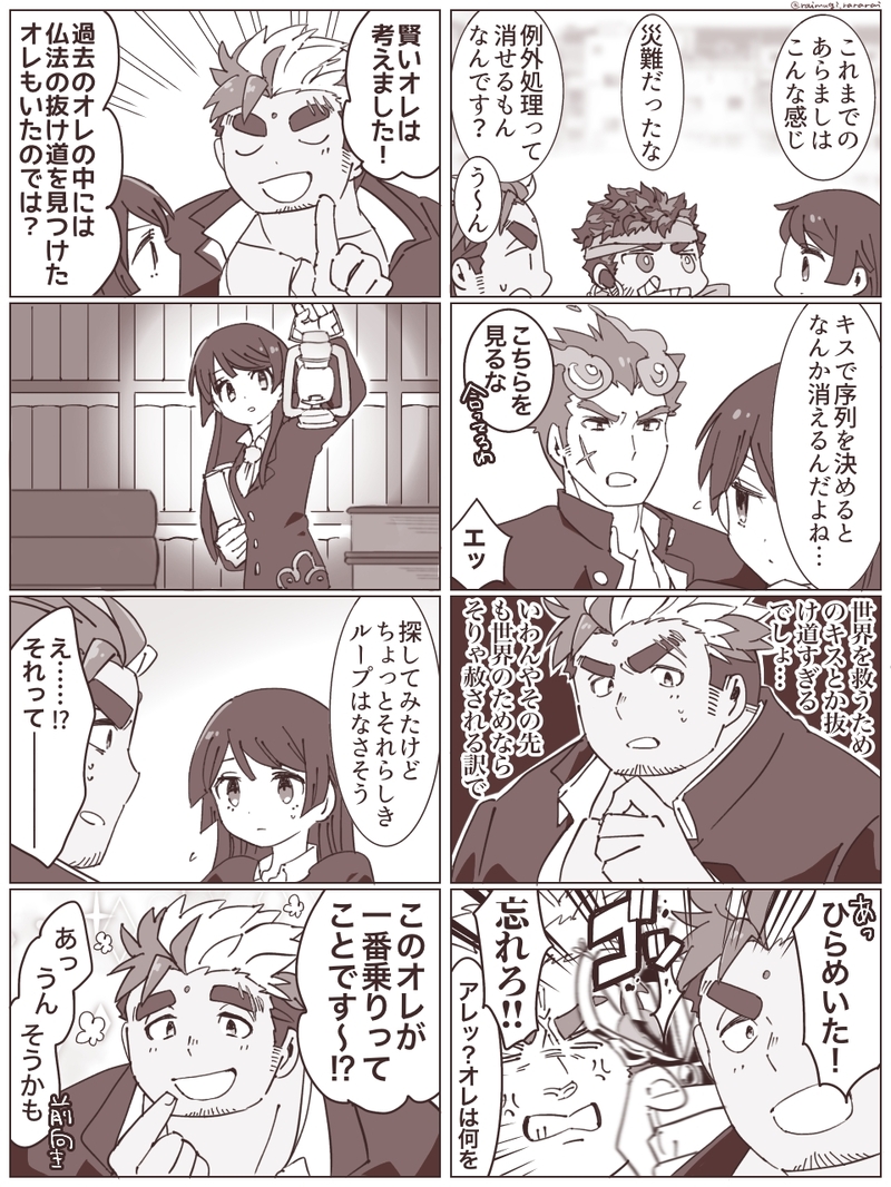 らいむぎ🌾☆quiet followDONEサンゾウくんとお友だち本編読み終わってから下書きしてそのままだったのを見つけたやつです。サンゾウくん、少年~青年誌の主人公みたいだな。あと得真道って良識の塊であるモトスミのおかけでもっている気がします。 Tap to full screen (size:960x1280).Repost is prohibited Let's send reactions! freqpopularsnackothersPayment processing Replies from the creator Follow creator you care about!☆quiet follow らいむぎ🌾DONEアスターくんと観4ちゃんの存在しない記憶🌴こんなことはなかったんだな… らいむぎ🌾DOODLEギス大人トライアングルそこそこ不仲な観主↔エクシオと、もちろん不仲なブローカー↔観主&エクシオを推しています。お互いに「コイツほんま…💢」と思うポイントがありそう。 らいむぎ🌾DONEイドレプリカと観2イドレプリカくんめっちゃしゃべる、心配してくれたのかな?と思いつつたぶん比較的お叱り🤔エクシオとなんか繋がっていたとしても、エクシオよりだいぶ素直に感情表現してる感じがあるのでよっぽどかわいいですね。 らいむぎ🌾DONEチョコレートシーカーズ、同行者たちがおもしろメンバーだったことをもっと言ってほしかった🍫バレてたかもしれないけど…🤔 らいむぎ🌾DONEヴラハムさん、砂漠ではめちゃくちゃ暑そう🌞観主がお水係してるのがかわいかった😊 2 らいむぎ🌾DONEアイドルのエーコーちゃんのブロマイドはいくらでも欲しい本当は左上にサイン、右下にひとこと書いて欲しいんだけど私はエーコーちゃんじゃなかったので書けませんでした、くやしい!! 2 recommended works _tannbo_24DOODLE払えるのかい!払えないのかい!!どっちなんだい!!!!!!!!もう金貰えるなら割と何でもするようになってしまっている万年金欠ギャンブラー獪♀と獪♀に金さえ払えば割と何でもしてくれることにハマってしまった善の地獄のエロ日常 shidoriDOODLEすけべな雰囲気なだけのイザディア……パス→18⤴︎︎︎?(yes or no) 2 xox__03chaDOODLEやすニャ えっちなことをしています。2枚目はボツったメイド服ソーニャちゃん 2 _user_nullDOODLEもう一つのtumblrリクエスト〜 これを描くのは楽しかったanother tumblr request~ I had fun drawing this 2 kuma_mo_detaSPOILERVOIDげんみ❌️ぼいちウズラの誕生日なので、NPCと自宅PCのお話を描きました。PLである自分自身の心を救おうとして描いたものですが、少しだけ他PCさんも描いています。自陣大好き。ほんの少しだけ、やさしい昔の夢を見てもいいかな。 5 sakaki_dmprDOODLE※クロードに関するネタバレ+妄想のrkgk MmncDONEシェウィ。ウィッチ可愛い好き!基本アルさんとルルさんに嫉妬してるから私の脳内のウィッチはだいたい暴走してる描いた時期ばらばらです。 11 ぎっさDONEメダリストアニメ楽しみ 恋占いCAN’T MAKE【乱与】*生理ネタあり初めての文スト小説を書こうと思ったけど、口調とかわからなすぎて駄作中の駄作になってしまいました…。呼び方とか間違ってたらごめんなさい皆の関係がしっかりつかめてないのが、良くなかった点かなと思っています多めに見てください希望があれば初潮ネタ書いても、いいな↑💚押してください 3377