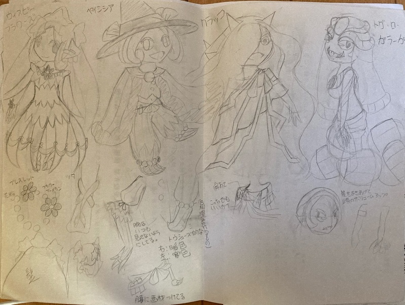 衣装再練りのために昔昔の絵を引っ張り出してきた 私の資料用 大変汚い