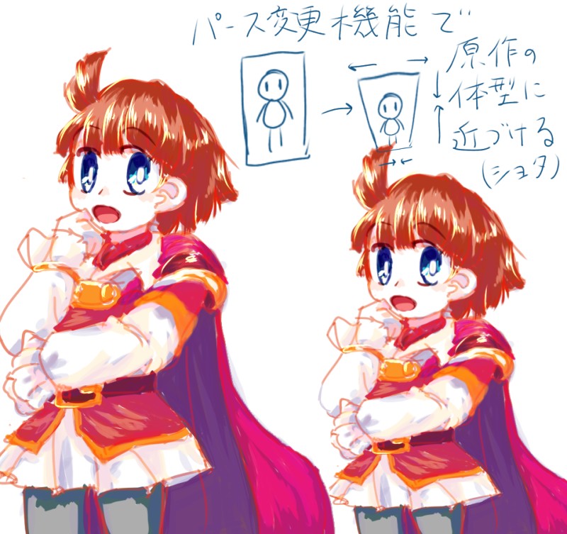 できる限り原作の頭身に近づけて描きたいので通常体型のポーズ集などを見ながら描いてそれから変形させている
