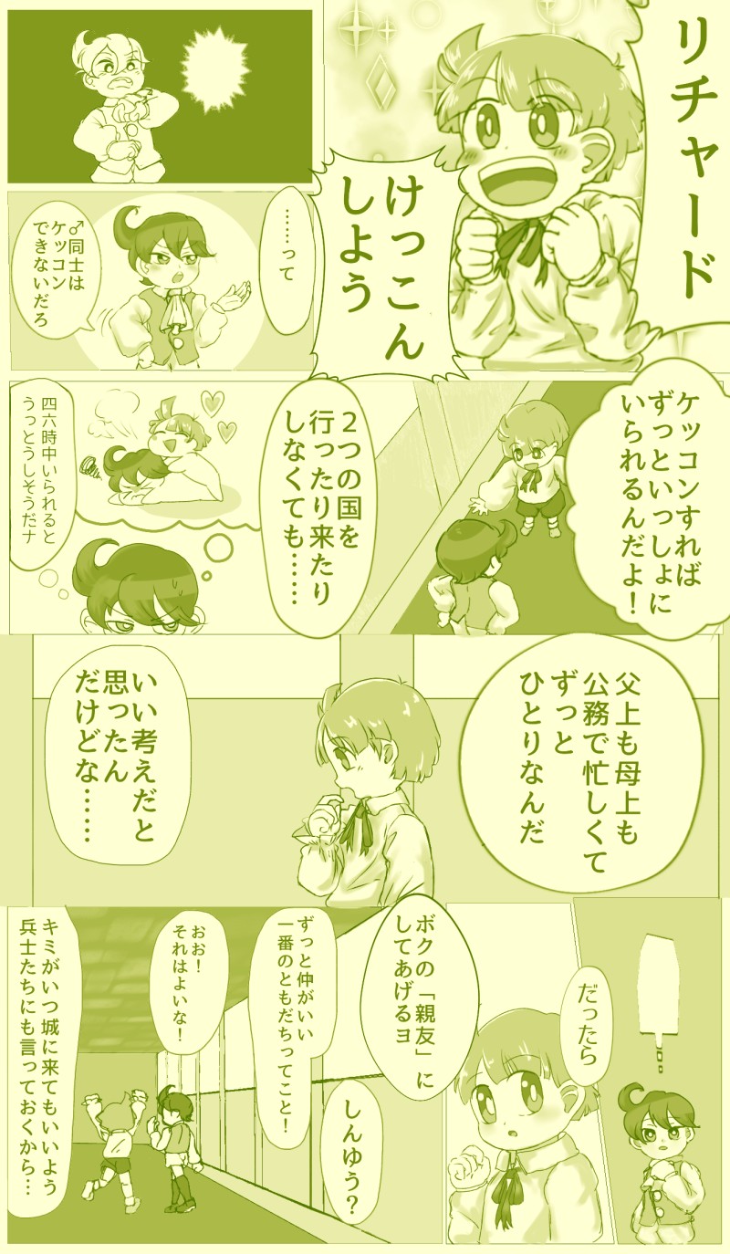 サブレ王子がリチャード王子にプロポーズする漫画(一応健全 幼少期捏造)