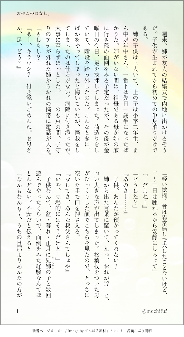mochifu☆quiet followREHABILI現パロ。道内在住、喫茶店店主のキラウシ(37)と居候のカドクラ(49)が、ふたりで赤ん坊の面倒をみる話です。(※門キラです。付き合ってます)北海道の地理がわかりません。方言も雰囲気です。(本文には出てきませんがキラウシくんの父親は他界しており、喫茶店は元は父親の店です) #門キラ show all(+32 images) Tap to full screen (size:618x1132).Repost is prohibited Let's send reactions! freqpopularsnackothersPayment processing Replies from the creator Follow creator you care about!☆quiet follow mochifuMOURNING争奪戦後初めての夏を迎えた❇️🦌。新盆(初盆)のお話です。(お盆のお作法については地域や各宗派によって様々なので、ふんわりとしたニュアンスで見ていただけると幸いです。ちなみに著者の実家は浄土真宗のため精霊馬作ったことないです…💦) 13 mochifuMOURNING❇️🦌前提で、カドクラの元女房のお話と渡米後の少々。(べったーのものを小説メーカーでまとめて収録しました)※性描写はないですが出産関連で少しセンシティブな内容を含みます。(スケベではないです。なんでも許せる方のみでお願い致します💦) 19 mochifuTRAINING❇️🦌センシティブ。0721の日を反芻しながら描いてみたけれどわたしにえち絵は難しい。。(えーんえーん、背景のことは薄目で見るか、見ないで見てください😭😭(?)あと、🍌は見えてません) mochifuDONE【R18】原作軸門キラお初。 ふたりはいつデキたのかなぁ、阿寒湖後かなぁ。。。と漠然と思ってましたが、阿寒湖後とゆうより、札幌直前の小樽(隠れ家)とゆう結論に落ち着きました(?)※門倉さんの元妻の描写や、キラウシくんの初体験のお話が出てきますので苦手な方はご自衛ください。本文34頁です。お時間のあるときにでも…💦🗝️(門誕4桁) 35 mochifuDOODLEキスの日ですね☺️門キラちゅっちゅ💕(るうんぺの模様も刺繍もいつも放棄してごめんなさい…) 2 mochifuREHABILI『薬局の店長の門倉さんと、本屋店員のキラウシが出会い系アプリで出会った』# 現パロ門キラ職業スロット(スロットメーカー)のお題で作成しました。(門倉(49)キラウシ(37)、門倉はバツイチでキラウシはゲイです。部分的に拙作の現パロ門キラ設定と重なってますが、全然別の世界観です)※書き忘れてたけど、記憶なし❇️×記憶なし🦌です。 15 related works かしおりDONE9/24tnkn3にて無料配布した門キラ本生臭坊✳️主×未亡🦌人パロです!(1ページめの注意書きをご覧くださいませ)お手に取ってくださりありがとうございました〜🥺! 9 mochifuREHABILI現パロ。道内在住、喫茶店店主のキラウシ(37)と居候のカドクラ(49)が、ふたりで赤ん坊の面倒をみる話です。(※門キラです。付き合ってます)北海道の地理がわかりません。方言も雰囲気です。(本文には出てきませんがキラウシくんの父親は他界しており、喫茶店は元は父親の店です) 33 _uchida13DONEキャバクラにいるキラウㇱと一緒にいる門の独白(現パロ) 1029 シオ原DOODLE色差分も気に入ってるから見て 書(格納庫)SPOILERようやく本誌に追いついた記念の絵(最新話というわけでもないですが) 2 とみいMOURNING 2 くいっくすたDOODLE今さらながら5月、6月についったに載せた140字や短いものをまとめました。あんまりなかった…。3月、4月の方にも間違って入ってるのがひとつあります。東の祭の話はインテが羨ましくて書いたちょっとお気に入り。ちょうど今も祭の後ですし! 19 _uchida13DONE門キラ原作軸 4 上课睡觉人DOODLE你别再画这种东西了 6 recommended works metaDOODLE姫始め前の赤褌門倉本誌ではまさかの褌吹っ飛ばしからの真っ裸だったもんな カリンパ㊷DONEファボリツするリパさん 2 うそやまPROGRESS寅佐作業中のやつと現パロおまけ 2 mucDOODLE高身長イケメンで体格が良いしなんでも着こなしそうだよなってとこから、現パロモデル房太郎。モデルさん写真の模写楽しかったからシリーズ化したいな~。でも入れ墨めんどくせえww やな@87DONE海外メイクのコイトオトノシン orimiyaDOODLEカイロらくがき、ゴールデンカムイの鶴見中尉。2021年1月19日(火)。 orimiyaDOODLEカイロらくがき、ゴールデンカムイの月島軍曹。バーニャ!2021年1月21日(木)。 orimiyaDOODLEカイロらくがき、ゴールデンカムイのキロランケ。現在19巻。2021年1月25日(月)。 tom_iss3DONE杉リパwebオンリーでのスケブです!きなこねじりさんへ~!