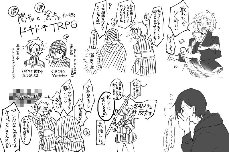 こーじー☆quiet followSPOILERTRPGログ(ほぼネタバレないけど気になる人は気を付けてね。『薔薇の館』というシナリオです。) #TRPG Tap to full screen (size:2400x1600).Repost is prohibited Let's send reactions! freqpopularsnackothersPayment processing Replies from the creator Follow creator you care about!☆quiet follow こーじーSPOILERCoC 蹂躙するは我が手にて半ネタバレにつき未通過閲覧❌3陣さんのKP準備物 4 こーじーSPOILER【CoC エンジェル・デビル・インプロパー】現状未通過❌HO悪魔⭕️差分やら特殊立ち絵やら準備物たくさん 10 こーじーSPOILER一隻眼、爛々と。現未❌自陣FA 大負け! こーじーSPOILER出来損ないの命現未❌HO1の立ち絵たち! 3 こーじーSPOILERかいマホ現未❌狼の差分とか諸々 6 こーじーSPOILER⚠️ネタバレ注意CoCシナリオ『Good morning ALL』HO:重病人 表情差分 5 related works きよし@キバ&ウィザード履修中DONETRPG「デッドラインヒーローズ」のPCキャラ 「オダマキ」身長(ヒール込み)189cmのオネェ みもりよぞらDOODLE現代入りネタで、色々な手違いが重なって某奇祭の御神体に跨る事になった獣人の男の娘、この時期はこの類(子孫繁栄祈願?)の祭りが多いそうで。 ぽんずDOODLE霧一とロコン誰にも賛同してもらえないことを前提に言うんだけど、なんか似てる気がするんだ…前髪のあたりとか?かわいい今ふと思ったけど、直人はサーナイトとか並べたいな~PC×ポケモンはたまーに見たくなるね totukiDONEFateTRPGで使ったキャラ絵。オリ鯖オリマスターご注意。 5 きよし@キバ&ウィザード履修中DOODLETRPGで作成したPC 圭(ケイ) 28歳「男娼の限界腐男子」と言う設定 りゅうしDOODLEメカバレ風 みもりよぞらPAST獣人(げっ歯類のチンチラ)のハイプリースト(男の娘)[性格]人懐っこくスキンシップをとるのが好きだが、基本的にインドアで面倒くさがりな感じ 小鳥遊PROGRESSハイフェッツ草案 発芽ゴリラPROGRESS何もないのもアレなので立ち絵進捗ポイポイ!前上げたのと大して変わってないとか言わない! #進捗 #TRPG recommended works ぽんずDOODLEらくがき汰郎兄が弱点属性と伝えていたのにも関わらず、妹のいる兄3人も出してきた上にPCまで兄に仕立て上げてくるGMの罪は重い yome_firstDOODLEなんと今年もお祝いしていただいて……嬉しいなあ。よかったね、百瀬さん。頑張って一年また生きような(出目)(出目は……) 2 九重ひのとDOODLE ksksk1127DOODLE byaku39DONE「いくぞロトスくん!」「はい!」3枚目:ロトスくん(PLカギヲ)お借り12星座館未通過×自陣◯ パスワードはyes 5 TRPG_FireMSPOILERAconite げんみ×HO2に狂った結果始まった1日1CP絵③※1枚じゃない※腐注意 4 TRPG_FireMSPOILERAconite げんみ×HO2に狂った結果始まった1日1CP絵⑩※自陣ネタバレ有※KPさんにDMで殺された内容を多分に含んでいるので今回はエモと捏造回です(念の為腐向けタグ付けます) 4 trpg_bowSPOILER君の胴現未❌ pass:yes戸叶先輩卓 5 杏Ⅶ-CrowlSPOILER【TRPGらくがき-CoC】十二星座館殺人事件※未通過・現行✕ 71