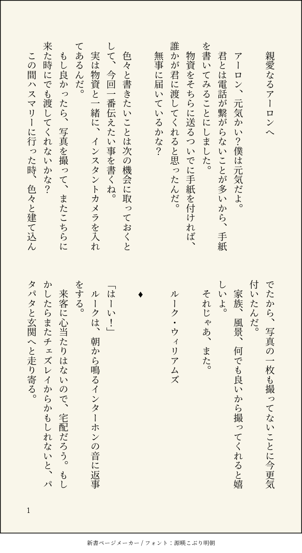 かなで☆quiet followMAIKING今書いているアロルク話の一部がホリバとすこ〜しだけシチュエーションが重なっていたので、もしよろしければ、、、 #アロルク allRounder show all(+3 images) Tap to full screen (size:618x1132).Repost is prohibited Let's send reactions! freqpopularsnackothersPayment processing Replies from the creator Follow creator you care about!☆quiet follow かなでMAIKING今書いているアロルク話の一部がホリバとすこ〜しだけシチュエーションが重なっていたので、もしよろしければ、、、 4 related works うーだらりSPOILER続きが書けなかったんだけどエンド後の…アロルク…?このあと記憶喪失になったルークに翻弄されて最後のコマみたいな顔するアーロンがいっぱい出てくる漫画読みたいです、導入はフリー素材だから続き欲しい 2 もだえDOODLEアロルク。名前の話。どちゃクソネタバレあり。らくがき顔漫画 5 おののぽてこDOODLEアロルク3本繋がり/豆まき/マーキング 5 kacyou_keylockDONE #アロルク版深夜の創作60分一本勝負『学パロ』で参加します。本編のネタバレっぽいのや色々混沌としてるのでワンクッション。にぎやかです。主に前半が。 6 もだえDONE完成)アロルクエロ漫画完成しました!お寿司だけでなくいろいろな食べ物スタンプをお与えくださりありがとうございました!描きたいものいっぱいあって大変ですが、この後日談もいつか描けたらと思って描き留めてあります。 27 1hF4nlDOODLE※女体化※フォロワーさんが誕生日お祝いに書いて下さった素敵小説の感想絵です。本当に可愛くて読むと幸せになれるお話なのですが、私の乏しい画力ではとてもその可愛さを表現できませんでした…。 水無月SPOILERワンクッションお試しも兼ねて。ミッション17辺りのネタバレ自宅アロルクif設定(※そしてこの設定の一部から派生した、友人作の青年ルクヒロ初夜翌日話(その節はご馳走さまでした…!)→https://poipiku.com/IllustViewPcV.jsp?ID=2082911&TD=4038445 3 cottonpiricaDOODLEワンドロお題で学パロ(アロルク♀)ルク♀なのでワンクッション。ヤンキーと優等生という王道も好きだし、幼なじみ設定も好きだし…とアレコレしてたら何故かルークに女子の制服着せてた…。金髪ショートの女の子が好きな所為かな。。。 bezel_arlkDONE捜査中キスしないと出られない部屋に閉じこめられた未満アロルク漫画 やおいです 8 recommended works CKanashiiTRAINING貴方はあろるくで『どこか知らない場所へ』をお題にして140文字SSを書いてください。#shindanmakerhttps://shindanmaker.com/375517 きたはら/しまDONEはみ通をよんで我慢できなくて書いた部屋ではなく屋上で寝ているアーロンと、なにかものを買ってあげたいルークの話 2522 ゆめこDOODLE #アロルク版深夜の創作60分一本勝負お題:彼服 ルークと同棲してる最中のパジャマ umai_okome_kueDONEセリフリクエストをいただいて書いたアロルク。めっちゃ長くなりました🤔犬のおまわりさんと迷子の子猫のお話です。 26 NEIA_AINEDONE【アロルク】7月21日なので、頭の悪い下ネタの半分ギャグを書きたかった次第です。内容が全般的に酷いのでポイピク送り。 6 はるきDONE2021.09.19 BMBコピー本交換会提出作品「そして扉は閉じられる」初期アロルクお互い相手の想いに気が付いているのにいまいちちゃんとくっ付いていない初期アロルクがわちゃわちゃするお話。コピー本企画大変楽しかったです、ありがとうございました!感想頂けたら喜びます…! 20 mosasasasamoDOODLEまあアロちゃん怒ってますけど萎えてはないよね platast_0DONEワルドギ両片想いアロルクですワルドギでしっぽの話を書きたかった既に致している関係で、作中でも99%布団の上にいますが描写は🔞未満です立場の違いを重く考えていて自分の気持ちにも深く踏み込めないワルサムライに萌える 10 AmrnmUmiDOODLEフォロワーさんに妄想していただいた「ルくんによる完全♡甘やかし♡筆おろし」を書いてみた。途中で私が力尽きちゃって尻切れトンボになってしまいましたが、らくがきと思って読んでいただければ嬉しいです…!パス:ア誕 3