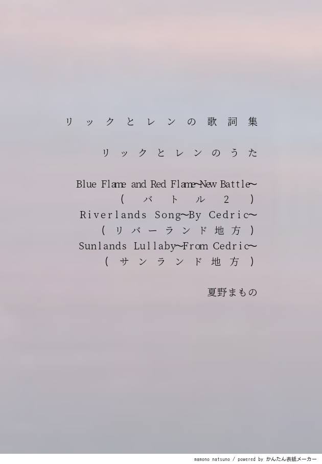リックが、全極でリバーランド地方に着いた時に唄い、全極が終わった後に、もう一度、唄う歌です。