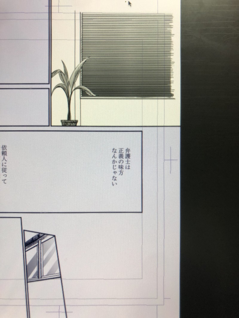 ツイートした通り、ブラインドのある背景を隣のコマに間違って描いてしまい、コピーしてスライドしたけど納得出来ず、全部描き直した。ついでに観葉植物は、スタイリッシュな感じに変えた。ブラインド描き直し3回目wwwでも随分慣れたし、前のよりかなり良くなったから結果的には良かったということで。過程より結果だろ?????