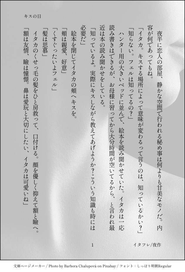 キスの日に書いたやつです。Twitterに載せてるのと同じものです