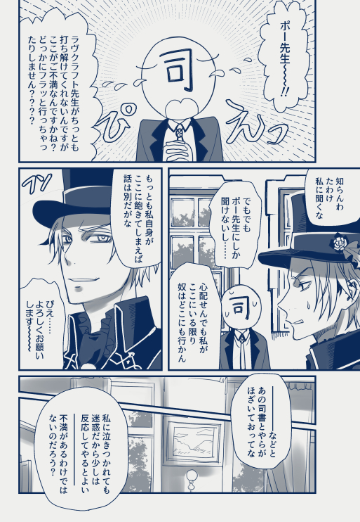 joboukou☆quiet followPASTそれまでは脳内に浮かんできたものを片っ端から描いてただけなんですが、「ポハワを布教したい」という明確な意思で描いたのはこれが最初です。これを上げた直後のTLが触手一色になってたのが楽しい思い出です。みんな触手好きですよね。 ##ポハワ show all(+3 images) Tap to full screen (size:513x742).Repost is prohibited Let's send reactions! freqpopularsnackothersPayment processing Replies from the creator Follow creator you care about!☆quiet follow joboukouSPOILER文劇6DANくんネタです!まだ大楽前なのでワンクッション。 joboukouDONE #恐怖の王様と私こちらはR18版です。めん某さんに『メスクラフト』の称号を頂いたんですが、私は雌受けしか描けないのでよろしくお願いします。オチに勢いがあってお気に入り。 3 joboukouSPOILER文劇5の例のあのシーンです。 joboukouSPOILER東京楽の日替わり(普通に公開しても問題ない気がしますがまあ一応) joboukouSPOILER7日マチソワのハワの日替わりです 2 joboukouSPOILER限界ポハワ民による文劇5感想② 相変わらず文字が多い。まだ続きます recommended works joboukouDOODLE日本的情緒セッセセの事後。 joboukouPAST多分ポハワだと一番古いのこれかな…ハワード実装前に描いたので万が一ラヴ…の人じゃなかったらどうしようと思ったんですがw実装前からすでに沼に片足突っ込んでるのが見て取れますが、この頃はまだここまでドハマりするなんて思いませんでした。 8 joboukouPAST比較的カプ要素薄めと思われるものから。ハワード実装前後は(私の脳内が)特にお祭り騒ぎでしたね。今でも一人カーニバルですけど。 24 joboukouPASTそれまでは脳内に浮かんできたものを片っ端から描いてただけなんですが、「ポハワを布教したい」という明確な意思で描いたのはこれが最初です。これを上げた直後のTLが触手一色になってたのが楽しい思い出です。みんな触手好きですよね。 4 joboukouPAST比較的CPっぽいものから。相変わらずネタ絵が多いですけど……最後の奴はフォロワーさんとの会話から生まれた十二国記ネタですが違和感なさ過ぎて笑う。一番最後のは「なんかこういう感じでハマった」という所感ですが、ホント未だになんなんだあの設定は…主従ってなんだ…って宇宙猫になりますわ。運営の推しカプなのは伝わってくる!!! 13 joboukouPAST描いてる私はめちゃくちゃ楽しかったマンガ。ポー様に夢を見過ぎてる。これの続き的なマンガ(時系列が続いてるというか)も描きたいので、出来たらまた見てやっていただけると嬉しいです。 16 joboukouMEMOなんか覚書みたいな自分メモです。(壁打ちとも言う) 3 joboukouDONE著作を詠唱して文豪を喚び出すやつ ポハワ編何にしようかと思ったんですが、読むのがポ様なので雰囲気合ってるのにしました。 2 joboukouDOODLE最後の帰って来た反応がやりたくてテンプレお借りしたやつです。ポー様絶対こういうとこある……