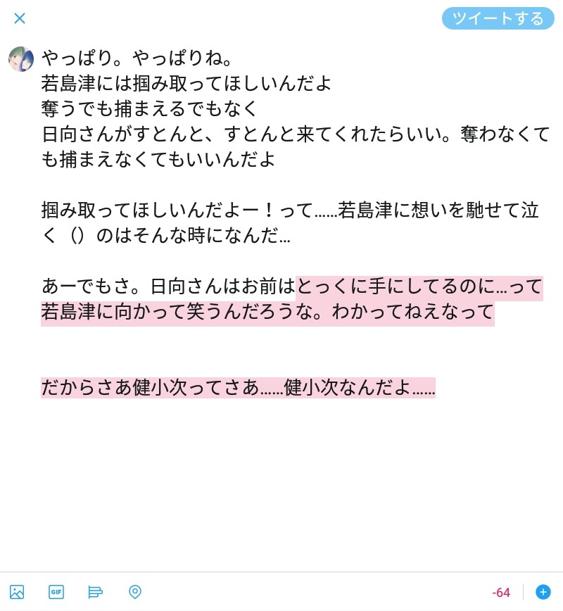 1-10☆quiet followMEMO例のあれです「健小次は日向さんあってこそだけど、健小次を健小次にしてしまうのは若島津」話リビドーは主に日向さんにあるんだけど、なんかこう…ぐわーっと…「若島津ーーー😢!」ってなるのは若島津に対してだけなんです。なんだろうね (今回の場合は誰かさんとのDMが引き金?) Tap to full screen (size:800x868).Repost is prohibited Let's send reactions! freqpopularsnackothersPayment processing Replies from the creator Follow creator you care about!☆quiet follow 1-10INFOWeb拍手を撤去したので(最後までご愛顧ありがとうございました🙇)置いてあったお礼絵を移行…させたかったんですが若島にゃんこ単品絵が統合データさえ残っていなかった……う…うーん…日向さんがひとりじめしたかったのね…(拙宅なので…そう思うことにしよう……) 2 1-10DOODLE20200901 2 1-10DONEHappyBirthday🎉🎊🎉今年はこの子で、この子をお祝いしたかったのいちばんつらかった時期。でも今日この日は空から降るメッセージを受け取ってるはずそして。この子の痛みも歯噛みもいつでも知っていたあの子もねでもね。あのね。すでに4ヶ月後を想って描いたので……そういうことですひとりではだめなの…だめなのよ…あらためて。日向さんお誕生日おめでとうー🎉🎊🎉😢← 2 1-10DOODLE連日うっだうだくったくたで🐯でも濡らさにゃやってられーんってなった。ので🚿 1-10MEMO男性ボーカルに浸るのも久々だなあと💿Lemonにならないで若島津と涙にくれる問題は千鳥のノブのおかげで払拭できました(それもどうかと)しかし。感電とまちがいさがしとカナリヤで健小次が押し寄せてきてたまらなくなったりひまわりというタイトルでこのアグレッシブさもなんか日向さんだわ とか。なんでもそっちになるけれども時代時代の天才性に触れられた時に、長生きもいいもんだとほんのり思ったり🙏 1-10MAIKING前書き入れて計27ページです📖息抜きで描いたので息抜きにでも読んでくださればうれしいです✨ 27 recommended works 1-10INFO👏👏👏👏👏(エアコミケ開催の👏)なぜか?直近のフォルダにあったサルベージ絵で当日ポスター気取りPixivに当日新刊告知アップしましたー。書店委託用リンクもこちらに貼ってあります。R18🙇https://www.pixiv.net/artworks/81222758(新刊作業はまだやってるんてす…当日までばったばたする通常運転w。嗚呼コミケだね!) 沙弥(さや)DONE #エアコミケエアスケブです。飯さんより【せいしょこさん】でリク頂きました。有難うございます!!法華経信者としての彼も好きなので数珠とお会式イメージで描きました。数珠はね…いいよね…私も自分のお数珠欲しい。 沙弥(さや)DONE #エアコミケエアスケブ第二弾お題箱より【千穂新十郎】頂きました!!有難うございます!!昨日何も無かったらこの二人描こうと思っていたので嬉しかったです!!(*´∇`*)ステイホームで片付け中、懐かしいものを見つけるオフの二人という体です。長いな。本来は二人とも一緒にいる時穏やかな表情で過ごすんじゃないかと妄想してますね。拙宅新十郎は千穂のことを自分家の子だと思い込んでいます(恐い) シン/今年もプロメア見れる嬉しいDOODLE #むにゅメアむにゅな、ガロちゃんと有明デートしてな、めっちゃいい感じになってん…て夢を見てん。エアコミケ1日目、お疲れ様でした!#エアコミケ #stayhome mqube015DONEBoothに置いてありますん 2 シン/今年もプロメア見れる嬉しいDOODLE再投稿#むにゅメア #エアコミケエアコミケに来たらすっごい密で押し合いへしあい。上着の裾を踏まれて「きゃー!」気がついたらガロちゃんの上に転んで急接近…こ、これはもしかすると…!?リオデガロン!! 2 siromisouemonINFOわたしが担当した4人+表紙絵の加工版。アンソロ、ゲスト様のイラストが欲しいがためにめいいっぱい頑張ったので素晴らしいゲスト様の添え物レベルにはなっているかと…そうじゃない場合は薄目開きでぼんやりと見ていただきたく…(ヽ'ω`)エアコミケの新刊にすることとす。通販してるんでよろしくね!ツイッタ固定でリンク貼ってあります! もりの🐰にこDONE*女体化 出勝♀表紙の笑顔出勝ちゃんにときめきすぎて…。同棲してる大人出勝♀ちゃんのつもりです。 3 おめめのめいDOODLE 25