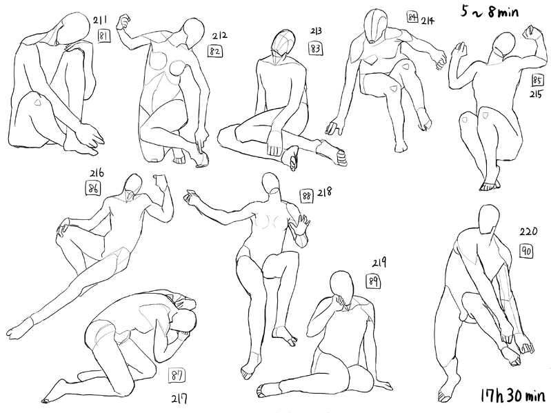 ポーズ集は3日ぶりだからか、今日は時間内に全然描けなかった。