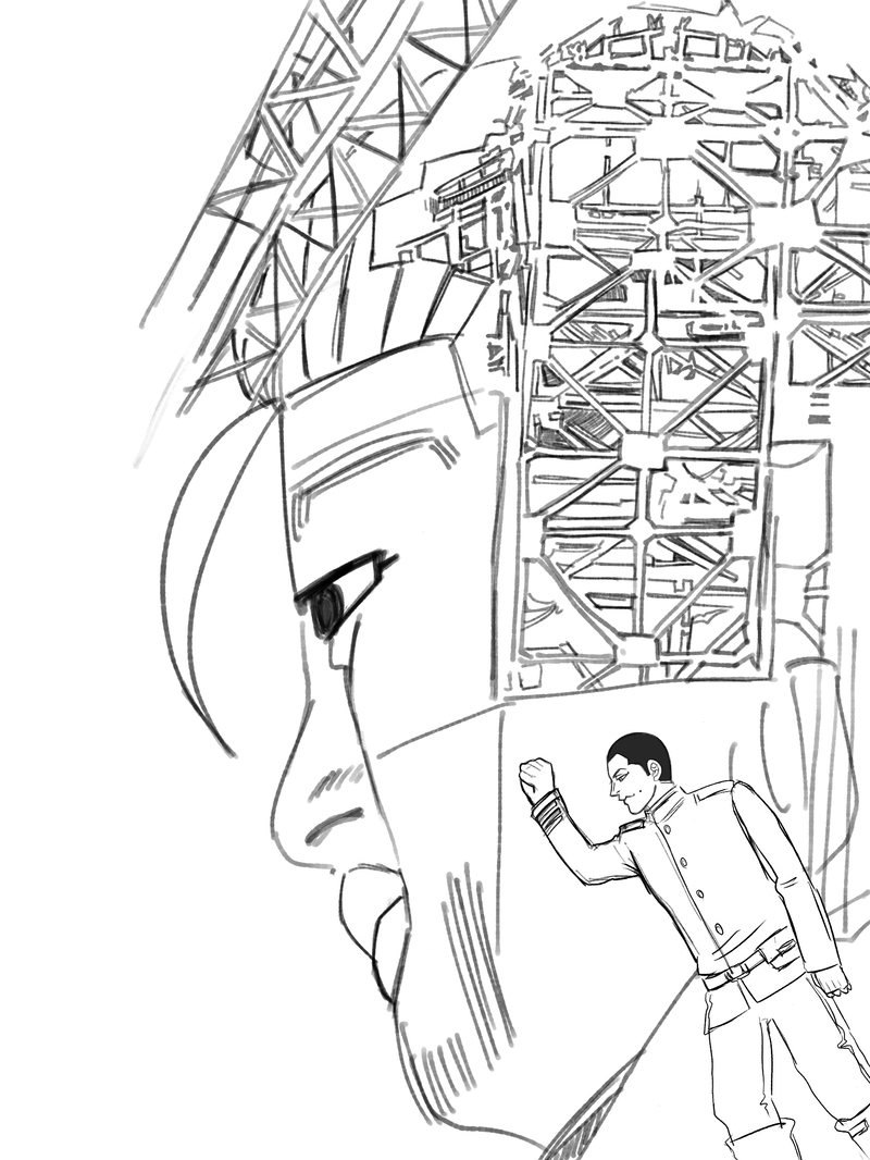 大仏になった尾と肩に乗る宇の上等兵ズ