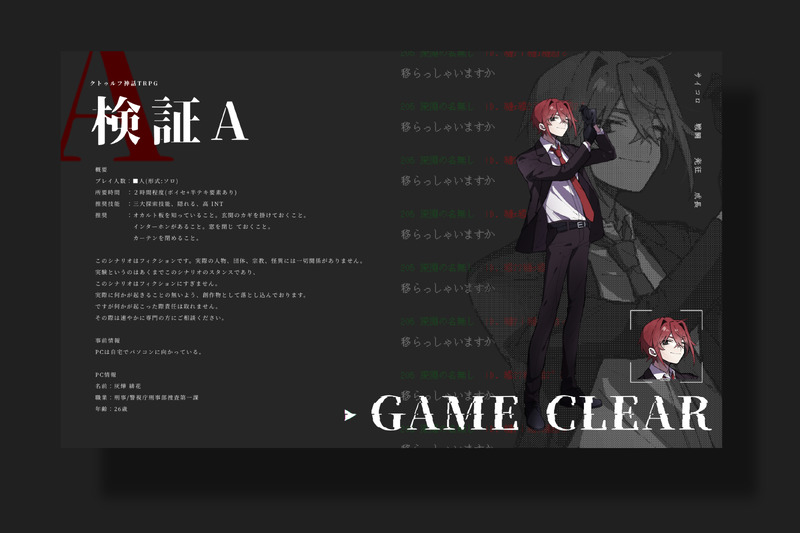 oxox666il☆quiet followINFO𝗖𝗮𝗹𝗹 𝗼𝗳 𝗖𝘁𝗵𝘂𝗹𝗵𝘂 𝟲𝘁𝗵 検証A▍𝗞𝗣 夢魔▍𝗣𝗟 kstacooo / 灰燁 緋花 𝗘𝗡𝗗-𝗕 Tap to full screen (size:3482x2321).Repost is prohibited Let's send reactions! freqpopularsnackothersPayment processing Replies from the creator Follow creator you care about!☆quiet follow oxox666ilINFOCall of Cthulhu 6th「OTHEllO - the Dee of Nara -」𝙺𝙿kstcooo𝙿𝙻 / 𝙿𝙲HO1 ささのぱんだ / 額谷 慈子HO2 えび / 小林 悟END:R▸ 両ロストにてシナリオ終了 oxox666ilINFOCall of Cthulhu 6th「祝祭に喧騒」𝙿𝙻 / 𝙿𝙲kstacooo / 透守 澪央プラナリア / 青▸ 両生還にてシナリオ終了 oxox666ilINFOCall of Cthulhu 6th「リバースリバースリバース」𝙺𝙿夢魔𝙿𝙻 / 𝙿𝙲HO1 ハシビロコウ / 鷲崎 瑛司HO2 かにみそ / 狐梟 秋海HO3 白砂 / 翔鳴 四椿HO4 kstacooo / 野遠 白夜END A▸ 全生還にてシナリオ終了 oxox666ilINFOCall of Cthulhu 6th「Paranormal Crime」𝙺𝙿 / 𝙺𝙿プラナリア / Micaela Libercus𝙿𝙻 / 𝙿𝙲kstacooo / Luster Tristanさくらこ / Leona SalingerEND A▸ 全生還にてシナリオ終了 oxox666ilINFOCall of Cthulhu 6th「トンネルから出ると死ぬ」𝙺𝙿 / 𝙺𝙿𝙲プラナリア / Gypsy𝙿𝙻 / 𝙿𝙲kstacooo / Pearl▸ 両生還にてシナリオ終了 oxox666ilINFOCall of Cthulhu 6th「同じ空には昇れない。」𝙺𝙿プラナリア𝙿𝙻 / 𝙿𝙲HO太陽 白砂 / 芙瀬 剣希HO月 kstacooo / 残月エンドD-1B▸ シナリオ終了