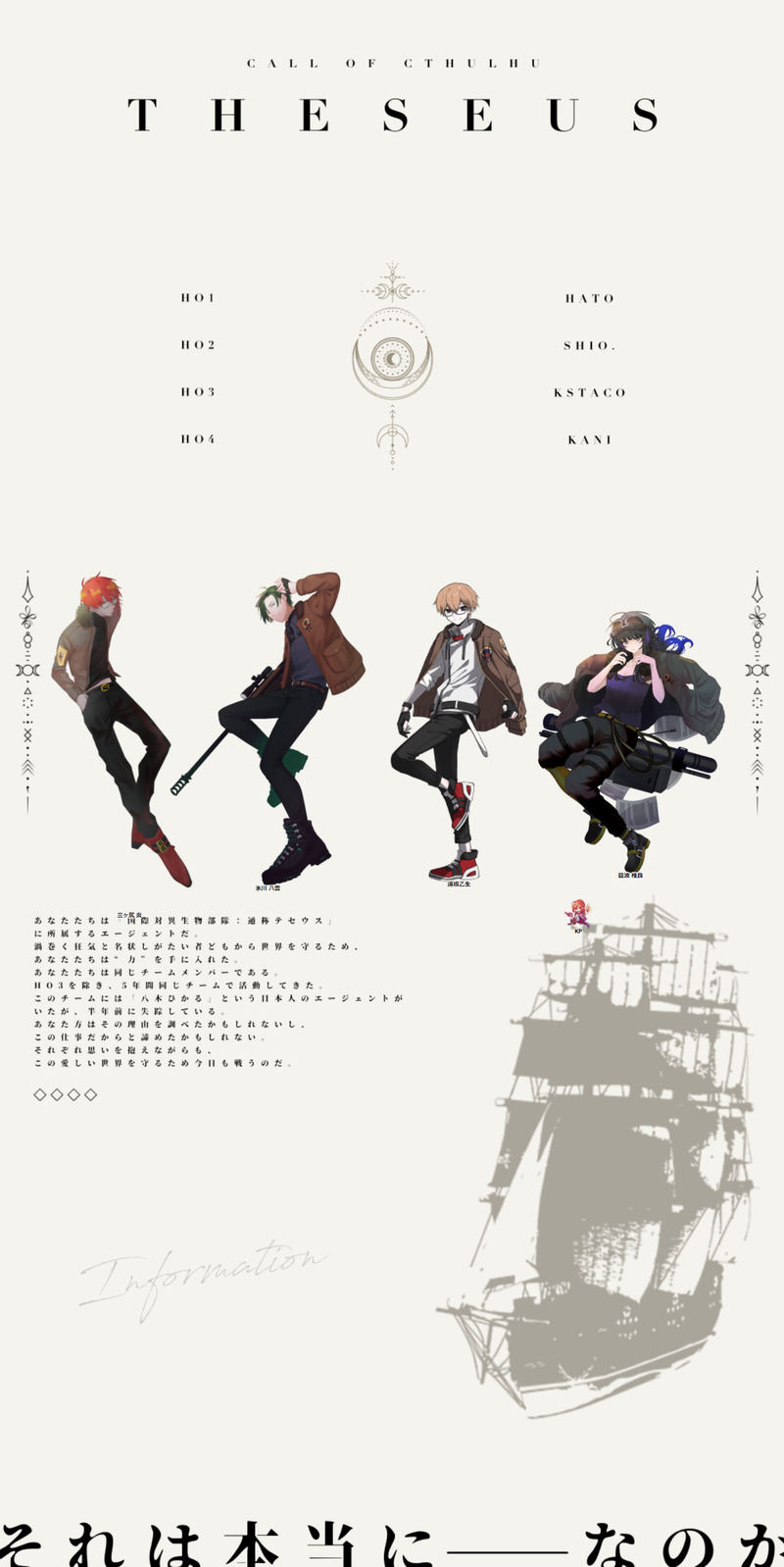 oxox666il☆quiet followINFO𝗖𝗮𝗹𝗹 𝗼𝗳 𝗖𝘁𝗵𝘂𝗹𝗵𝘂 𝟲𝘁𝗵 THESEUS|KP 夢魔|PL - HO1 鳩/三ヶ㞍炎 - HO2 塩。/氷川八雲 - HO3 kstacooo/遠坂乙生 - HO4 かにみそ/藍波椎良 2022.05.01~2022.05.05 エンド1 全生還 show all(+1 images) Tap to full screen (size:1342x2682).Repost is prohibited Let's send reactions! freqpopularsnackothersPayment processing Replies from the creator Follow creator you care about!☆quiet follow oxox666ilINFOCall of Cthulhu 6th「OTHEllO - the Dee of Nara -」𝙺𝙿kstcooo𝙿𝙻 / 𝙿𝙲HO1 ささのぱんだ / 額谷 慈子HO2 えび / 小林 悟END:R▸ 両ロストにてシナリオ終了 oxox666ilINFOCall of Cthulhu 6th「祝祭に喧騒」𝙿𝙻 / 𝙿𝙲kstacooo / 透守 澪央プラナリア / 青▸ 両生還にてシナリオ終了 oxox666ilINFOCall of Cthulhu 6th「リバースリバースリバース」𝙺𝙿夢魔𝙿𝙻 / 𝙿𝙲HO1 ハシビロコウ / 鷲崎 瑛司HO2 かにみそ / 狐梟 秋海HO3 白砂 / 翔鳴 四椿HO4 kstacooo / 野遠 白夜END A▸ 全生還にてシナリオ終了 oxox666ilINFOCall of Cthulhu 6th「Paranormal Crime」𝙺𝙿 / 𝙺𝙿プラナリア / Micaela Libercus𝙿𝙻 / 𝙿𝙲kstacooo / Luster Tristanさくらこ / Leona SalingerEND A▸ 全生還にてシナリオ終了 oxox666ilINFOCall of Cthulhu 6th「トンネルから出ると死ぬ」𝙺𝙿 / 𝙺𝙿𝙲プラナリア / Gypsy𝙿𝙻 / 𝙿𝙲kstacooo / Pearl▸ 両生還にてシナリオ終了 oxox666ilINFOCall of Cthulhu 6th「同じ空には昇れない。」𝙺𝙿プラナリア𝙿𝙻 / 𝙿𝙲HO太陽 白砂 / 芙瀬 剣希HO月 kstacooo / 残月エンドD-1B▸ シナリオ終了