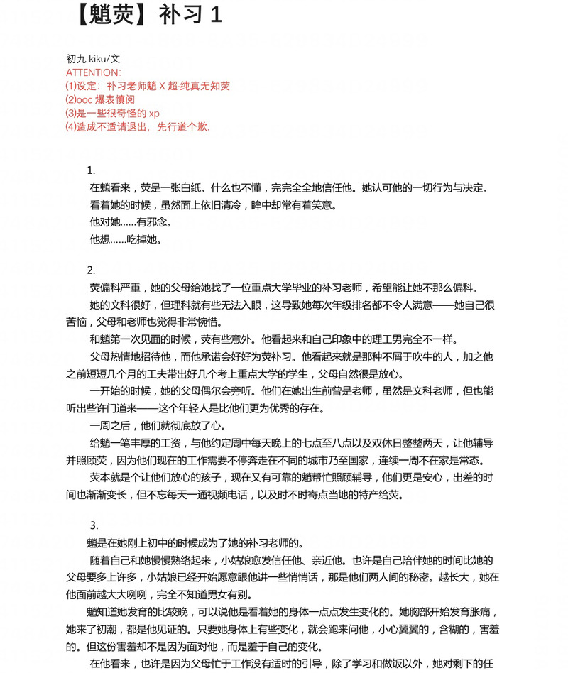 Kiku417☆quiet followPROGRESS【魈荧】补习1 🔞很奇怪的xp 慎阅慎阅慎阅!!!!!!!!!!先行道歉!! #原神同人 prototheist #原神乙女向 originalGoddessTo #魈荧 show all(+4 images) Tap to full screen (size:1045x1239).Repost is prohibited Let's send reactions! freqpopularsnackothersPayment processing Replies from the creator Follow creator you care about!☆quiet follow Kiku417DONE旧文重发🔞【魈荧】《生命的沙漏》ooc有,私设多,车速高 20 Kiku417DONE【借号发布】达荧迷你篇《事后清晨》 Kiku417PROGRESS🔞系列 《魂穿提瓦特之我竟是欲望之神?!2》本篇含接吻. 2 Kiku417PROGRESS🔞系列《魂穿提瓦特之我竟是欲望之神?!1》本篇含车尾气. 2 Kiku417PROGRESS🔞系列 《魂穿提瓦特之我竟是欲望之神?!·世界观导入篇》 Kiku417DONE【贝荧】《肖像之约》阿贝多生贺文,🔞,ooc有自行避雷 3 related works LeomyaoDOODLE完成度比较高的放在各处~希望以后进步了看见也会感慨万分~ 阿贝多的乙女工坊DONE阿贝多乙女向18↑? 3714 LeomyaoDOODLE海灯节快乐 2 Kiku417DONE【借号发布】达荧迷你篇《事后清晨》 Kiku417DONE【鹿荧】《第一次》🔞ooc有自行避雷 我是五郎大人的狗DOODLEomg!介散荧本太好冲了🥵🥵,就是有点短,浅放这里备份一下。(非自产,米娜桑不要转载奥!) 10 阿贝多的乙女工坊DOODLE 5106 Kiku417PROGRESS【魈荧】补习1 🔞很奇怪的xp 慎阅慎阅慎阅!!!!!!!!!!先行道歉!! 5 Kiku417DONE【贝荧】《肖像之约》阿贝多生贺文,🔞,ooc有自行避雷 3 recommended works 牛乳🐄TRAINING900800断面図が好きです18↑?yes/no p_anemoninDOODLE風元素男子+蛍ちゃん現パロ(?)でタピオカ飲んでるだけ Kiku417DONE《感电》 魈/散兵/深渊空/达达利亚 4 アヲヰチDOODLEメイドの日 魈くんとアルベド先生オマケで装飾で遊んだやつ 3 MicroMoon微月DONE钟荧密码在afd中发电获得 10631 chi_mocyDOODLE※花丸映画ネタ/膝髭(くっついてない) 2 橘绘里奈DONE无法查看可加禁言粮群768774122下载阅读,答案见爱发电最新动态。如二传必须注明出处,感谢理解。密码:Elysia 6916 月凪葬夜CAN’T MAKE私にはここまでが限界…。 Wojiya_25DOODLEモブ魈のすけべ絵😇