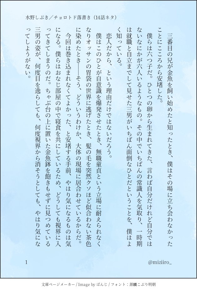 じつの父親は、ブラッドリーが中学に上がる頃に死んだ。敵対組織の鉄砲玉に体のあちこちを打たれて失血死という、なんともあっけない死に様だったが、おなじくらい、あの男には似合いの末路だったとも思う。