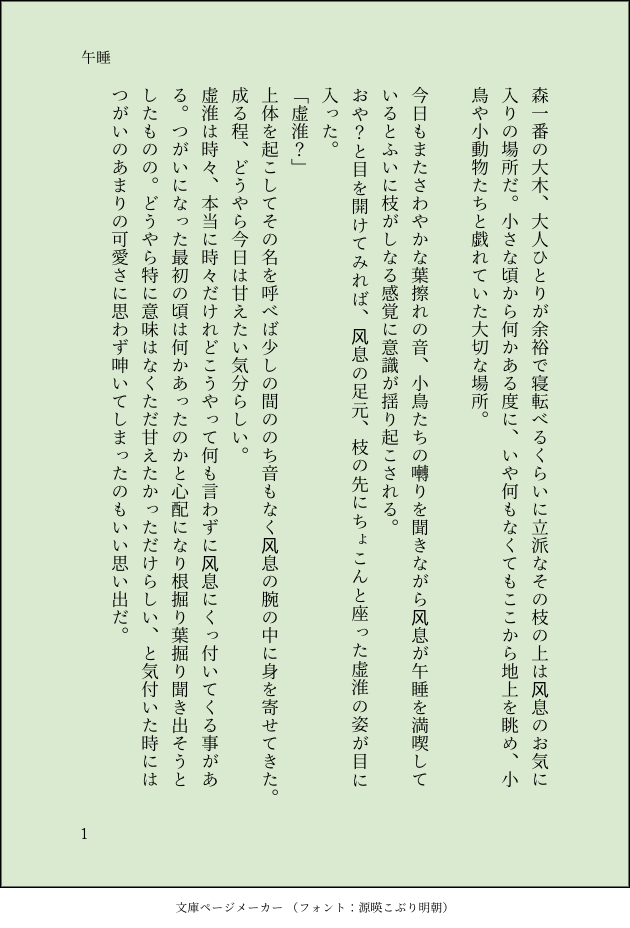 ひのえとり☆quiet followDOODLEくっ付いてお昼寝する风虚 show all(+1 images) Tap to full screen (size:630x928).Repost is prohibited Let's send reactions! freqpopularsnackothersPayment processing Replies from the creator Follow creator you care about!☆quiet follow ひのえとりDOODLEくっ付いてお昼寝する风虚 2 ひのえとりMOURNINGハッピー現パロ。今回は虚淮さんと天虎ちゃんの小話。 ベースは风虚/風虚 いつにも増してmy設定天こ盛りなのでご注意を。 爆炒江湖で天虎ちゃんのスキル(極)はよくある全体厨师烤技法+2だけど、これで虚淮さんの烤スキルがちょっとUpしてるのすごく好き。そんな妄想をコネコネ。 6 ひのえとりMOURNING二枚目は蛇足。・.*:*ஐ꙳。:*.・风息の選択については折を触れ考えてしまうのだけれど、結局彼が彼であるからこそあの結末だろうな、と。彼の執着は龍遊ひいてはそこで暮らしていた幸福な記憶だと考えているのでいっそ小さな頃からひと所に寄らず放浪していたら違ったかもしれないな、とは思う。それはまた寂しい事だけれど。 2 ひのえとりMOURNING虚淮さんが真夜中にパンケーキ作るおはなし。+翌朝のおはなし。爆炒江湖の风息がスキル極めると「场上所有库克烤+45:料理してるキャラの烤技能+45」となるのが有能だし妄想捗るしでたまらないのです。虚淮さんは烤技能持ってないけど风息と一緒なら簡単な烤レシピ(食パンとか)が作れるようになるのがとてもよい。 7 ひのえとりMOURNINGメイド服着てるだけのおはなし。マンネリ防止で色々仕掛けてくる虚淮さん。 2 ひのえとりMOURNING現パロ。风虚がお話してるだけ。これはお付き合いしだして間もない頃。この現パロの虚淮さんは风息とお付き合いするにあたり色々身体を調整したばかりなので、快感は拾えるけどまだ性欲を認識できてない状態。これから风息にあれこれ教え込まれていくのでしょう。 3