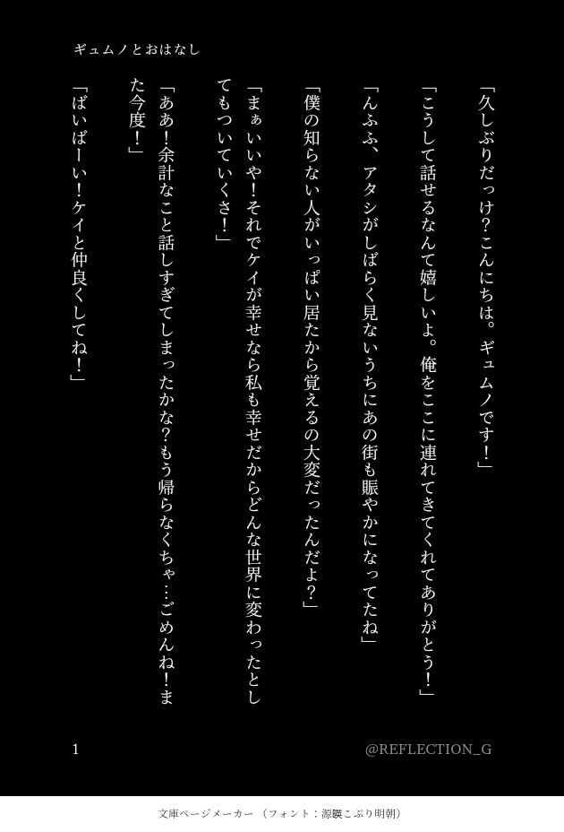 REFRACTION_G☆quiet followMOURNING恥ずかしいけど載せたい自己顕示欲〜ッ!ギュムノちゃんとおはなししてる君。 show all(+4 images) Tap to full screen (size:630x928).Repost is prohibited Let's send reactions! freqpopularsnackothersPayment processing Replies from the creator Follow creator you care about!☆quiet follow REFRACTION_GMOURNING最近ハマりまくってるAIお絵描き。みんなのサブタイトルを入れてみたよ全て【来歴】で制作。ドーリス▶ジボガ▶アンナ▶グラウ▶フィロ▶ホシ▶マサル▶ニシキ▶ナナ▶ジェリー▶ケイ▶ギュムノの順番! 12 REFRACTION_GMEMOそれぞれの両親や実家について軽ーくまとめたもの。兄弟父母が可愛いので見た目だけでも作りたいねぇホンヘに関わりそうなものはちょっと濃いめに書いたつもり。 5 REFRACTION_GSPUR ME出身地区・更新版(地区名はきめてない)(えぇ…)あなたはどこに住む!?(バーン!)ここまで決めてるのにどうしても良いのが降りてこないんですの……何故……もう少し知識を増やして納得のいくものが出来るまでABCで行きます(これはやらない√) 3 REFRACTION_GMOURNING没ンタインss。またニシキとフィロですね〜ここは公式カプなのかよ(チガイマツ)書きやすいし、書くネタが溢れてくる(ただのへき)読んでやってもええで(寛容)な人は読んでみてください。何もおきませんが私の心は満たされます。 5 REFRACTION_GMOURNING昔書いたノアとナナの前日譚をリメイク。ナナちゃんを掘り下げるのにはノアは欠かせないからね👍ナナの自傷癖、必要以上に眠ろうとする理由が少し分かる(俺メモの為)これマジでほかのゲストもいつかやらんとな〜(アセアセ) 7 REFRACTION_GCAN’T MAKEギュムノ、ケイ、NEは基本この形から分岐~みたいにしたいな~と。 2