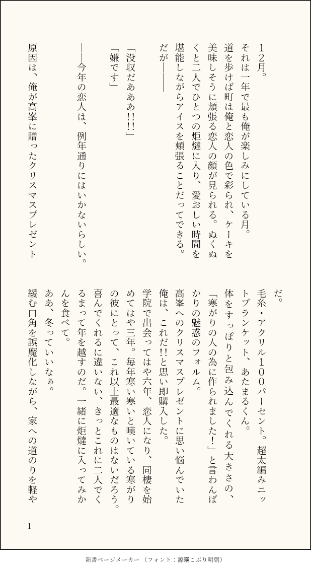 あまんぐま☆quiet followMOURNING一応ここまでで一旦上げるものは最後になります。ちあみど小説7作目。クリスマスプレゼントとしてあげたブランケットにたかみねを寝取られるもりさわの話。⚠もりさわ23歳、たかみね21歳くらい #ちあみど airMesh #千翠 thousandJade show all(+4 images) Tap to full screen (size:618x1132).Repost is prohibited Let's send reactions! freqpopularsnackothersPayment processing Replies from the creator Follow creator you care about!☆quiet follow あまんぐまMOURNINGちあみど小説3作目。翠くんの着替えを手伝う守沢先輩のお話(健全)です。 7 あまんぐまMOURNING一応ここまでで一旦上げるものは最後になります。ちあみど小説7作目。クリスマスプレゼントとしてあげたブランケットにたかみねを寝取られるもりさわの話。⚠もりさわ23歳、たかみね21歳くらい 5 あまんぐまMOURNING眠くなってきました。ちあみど小説6作目です夏目漱石「夢十夜」引用居眠りするたかみねと起こすもりさわの話⚠ズ!軸 みどりくんが自分が死んだらとか言ってますが暗い話じゃありません 7 あまんぐまMOURNING満身創痍です。ちあみど小説5作目。Twitterで仲良くさせて頂いているフォロワーさんの素敵シチュを拝借して書きました…!付き合ってないちあみどが、ドッペルゲンガーのちあみど(お付き合い済み)に出会う話。⚠Sっ気あるもりさわ、ちょっとMっ気あるたかみねが出てきます。 ドッペルゲンガーパロ ズ!軸です 11 あまんぐまMOURNING古傷が抉られています。ちあみど小説4作目です。こちらもワンドロのお題「漫画」から。(3作目のやつも多分そうだったと思います)⚠ズ!軸 少女漫画風味 6 あまんぐまMOURNINGちあみど小説2作目。長い。すごく長い。⚠2人とも成人済み 飲酒描写あり モブ女性が名前だけ出てきます ほんのり暗いけどハピエンです 21 related works あまんぐまMOURNING古傷が抉られています。ちあみど小説4作目です。こちらもワンドロのお題「漫画」から。(3作目のやつも多分そうだったと思います)⚠ズ!軸 少女漫画風味 6 コ𓅪MEMOちあみどWebオンリーイベント『チャンスはよりどりみどり』開催おめでとうございます&ありがとうございます!!!Webオンリー用に短いですがちあみどを描きました見てくださってる方いたらありがとうございます!漫画、コマ割り初心者なので読みにくかったらすみません𓀥𓀥𓀥良きちあみどライフを!!!!!!!! 3 あまんぐまMOURNING眠くなってきました。ちあみど小説6作目です夏目漱石「夢十夜」引用居眠りするたかみねと起こすもりさわの話⚠ズ!軸 みどりくんが自分が死んだらとか言ってますが暗い話じゃありません 7 ofu_chiamidoDONEgnsnパロちあみど。フォンテに住む工場員の❤️×助手の💚の話。今なら設定盛り込んでも許される!!実装情報出る前に書け!!の精神で書き上げたので国の詳細な設定などは想像で書いてます。公式の設定やPV、その他映像などから全体的に🇫🇷と🇬🇧の革命期をイメージしてます。 36759 あまんぐまMOURNINGちあみど小説2作目。長い。すごく長い。⚠2人とも成人済み 飲酒描写あり モブ女性が名前だけ出てきます ほんのり暗いけどハピエンです 21 あまんぐまMOURNING一応ここまでで一旦上げるものは最後になります。ちあみど小説7作目。クリスマスプレゼントとしてあげたブランケットにたかみねを寝取られるもりさわの話。⚠もりさわ23歳、たかみね21歳くらい 5 kuikuiDOODLEjust chiaki wanna have sex with midori 3 usagiduki2DONE2人が同性婚のモデルケースになるお話。ハピエン⚠️ファンのみんなの前で公開告白します⚠️誹謗中傷される描写があります⚠️ちあみどが結婚会見します⚠️ちあみどに法律を変えさせてます以上、ひとつでも地雷があればご自愛ください 7 あまんぐまMOURNING満身創痍です。ちあみど小説5作目。Twitterで仲良くさせて頂いているフォロワーさんの素敵シチュを拝借して書きました…!付き合ってないちあみどが、ドッペルゲンガーのちあみど(お付き合い済み)に出会う話。⚠Sっ気あるもりさわ、ちょっとMっ気あるたかみねが出てきます。 ドッペルゲンガーパロ ズ!軸です 11 recommended works bun_0000TRAINING千秋が一切喋らないちあみどです…ストでエゴサしちゃう系高峯に萌えた結果生まれた妄想と捏造の産物 5 bun_0000DONEワンドロ参加です〜お題【千秋が2人】いやこういうことじゃなくない?と思ったもののこんなのしか書けませんでした…反省 7 あまんぐまMOURNING満身創痍です。ちあみど小説5作目。Twitterで仲良くさせて頂いているフォロワーさんの素敵シチュを拝借して書きました…!付き合ってないちあみどが、ドッペルゲンガーのちあみど(お付き合い済み)に出会う話。⚠Sっ気あるもりさわ、ちょっとMっ気あるたかみねが出てきます。 ドッペルゲンガーパロ ズ!軸です 11 あまんぐまMOURNING眠くなってきました。ちあみど小説6作目です夏目漱石「夢十夜」引用居眠りするたかみねと起こすもりさわの話⚠ズ!軸 みどりくんが自分が死んだらとか言ってますが暗い話じゃありません 7 あまんぐまMOURNING一応ここまでで一旦上げるも