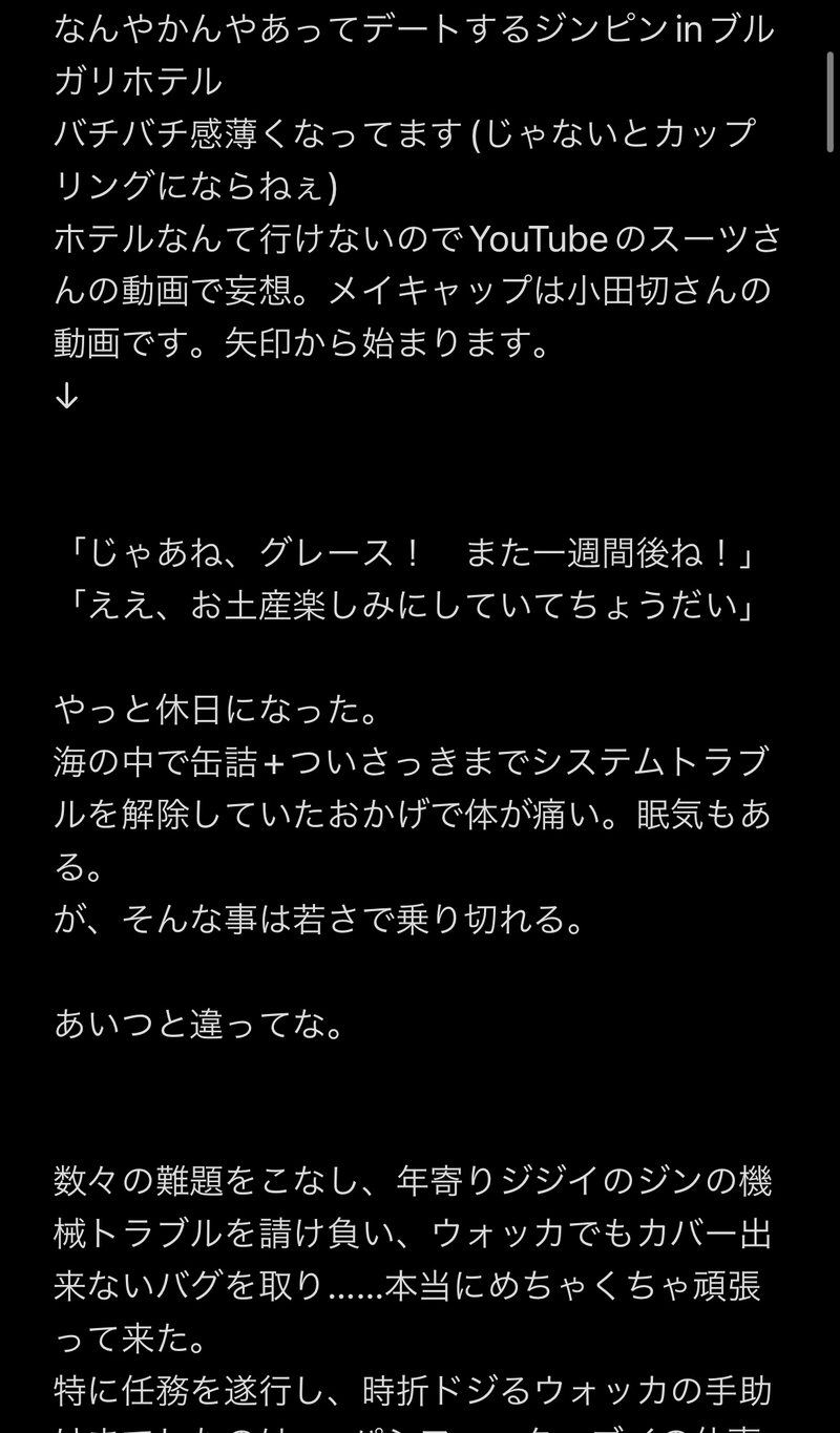 ToRoro541B_1☆quiet followMAIKING途中の話ジンピンになります。しっかりかけたら支部に一部載せるとか、逆カプのもセットにしてデジタル同人誌出したい(その時には内容修正するかも)。あわよくばこれでもっといい小説書いてくれる人が出て来て欲しいという野望がある。内容は参考にしている動画がありますので是非、そちらも見て下さい(宣伝) #ジンピン show all(+9 images) Tap to full screen (size:1168x1994).Repost is prohibited Let's send reactions! freqpopularsnackothersPayment processing Replies from the creator Follow creator you care about!☆quiet follow ToRoro541B_1DOODLE支部で書いてる二次創作イン⚡️スー☀️のF/G/Oの本家ドラ様との話。本家ドラ様もスー☀️拗らせててそこに並行世界のイン⚡️スー☀️が来て狂ってくれという話 3 ToRoro541B_1MEMOこんな俳優パロ書きたいってメモ書き俳優パロなら自分も俳優ちょっとやってるのにジンのマネージャーやってそうなウォッカさんが目に浮かぶ…完成させたら支部に載せたい 2 ToRoro541B_1MAIKING途中の話ジンピンになります。しっかりかけたら支部に一部載せるとか、逆カプのもセットにしてデジタル同人誌出したい(その時には内容修正するかも)。あわよくばこれでもっといい小説書いてくれる人が出て来て欲しいという野望がある。内容は参考にしている動画がありますので是非、そちらも見て下さい(宣伝) 10 ToRoro541B_1CAN’T MAKE殺伐としている筈がなんか笑える🅿️の死後物語(他面子もいる)ざっくり書いて満足して投げます。 10 ToRoro541B_1MAIKINGジンピンかピンジンで考えてたらこんなの生まれた。めっちゃ物騒です。どう見るかは人次第かもしれないです 2 ToRoro541B_1MEMOジンニキin女主inリアル現代の破天荒ドラマストーリーの、こんなの書きたいってメモです。 3 related works Natsuna_dcDONE暑熱【ジンピン】 3 890_deadlineDOODLE 5461 890_deadlineDOODLEジンピンちゃん首締めハードセックステキスト 6981 gohanya292941DOODLE引き止めたいジンピンの話。無配にしたかったもの。R15程度。 3202 gohanya292941DOODLEジンピン血まみれスローセックス🔞 4267 covyyyah_deathzDOODLEジンピンR-18画像の保存・転載を固く禁ズ 9 ただの倉庫DOODLEジンピンでワンドロ。テーマ「もし腕の中に閉じ込めたのなら。あなたは息が出来なくて溺れるのでしょう」 979 ToRoro541B_1MAIKING途中の話ジンピンになります。しっかりかけたら支部に一部載せるとか、逆カプのもセットにしてデジタル同人誌出したい(その時には内容修正するかも)。あわよくばこれでもっといい小説書いてくれる人が出て来て欲しいという野望がある。内容は参考にしている動画がありますので是非、そちらも見て下さい(宣伝) 10 us.DOODLEジピ。カップル描く練習をジピでした。特にR指定では無いけど(ら)でくっついてるのが1個あるので1枚挟んどく。うっかりシ"ンに普通のシャツ着せてしまったことに全て書き終わってから気づいて後の祭り。直すのめんどかったので諦めた。 2 recommended works hitsujimuttonDOODLE同居してる和田さんと鶴見 tsukiko1stDOODLE好きと言ってもらったキャラをその人の為に落書きするタグのやつ。敢えて現パロで統一しました😉現パロではアルカンメンバーも家族になってます👍 6 きゅーDONEss"四季"クリ.ープハイプ/ 四季 から浮かんだ徒然。【現パロ】大学の先輩(アルフレッド)と後輩(オスカー) 9 あまはなPROGRESS前に呟いてたお狐様なお菓子屋の晴と、そこで菓子職人する羽目になった道な現パロファンタジー。取り敢えず導入部分のみ書けたので投稿します。書き終わったらpixivにまとめて投稿予定。 9615 cino22222DOODLE調子に乗ってたらお兄ちゃんの本気に火をつけてしまいました🔥 satsuki470517DONE「お持ち帰りは慎重に③」文庫メーカー全10ページ※マクドナルドコラボぎゆしの小説※現パロぎゆしの※義勇さん体育大学4年生※しのぶさん薬学部1年生※2人は別々の大学に通っている※付き合って1年弱 10 gkmitimitiPROGRESS⚠️現パロ?アシリパさんとフォゼ杉 k_rinseiDONE現ぱろ義炭。くっきー片手にいちゃつくふたり。甘えんぼだったり大人の色気でたんじろうを翻弄する狡いぎゆうさんがいます(笑) 1756 __bonboneDOODLEENN組の現パロ〜 3人でわちゃってほしい