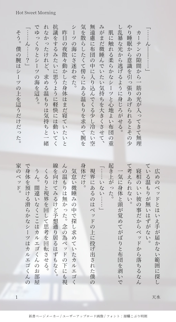 天水☔☆quiet followINFOシチカル 🌹🍲エゴ誕SSの一夜開けた後こういう時に限って普段と違う行動を起こすエゴエゴ誕SSの話は繋がってますがこれのみでも話は完結してます #エゴ誕 egoism show all(+5 images) Tap to full screen (size:618x1132).Repost is prohibited Let's send reactions! freqpopularsnackothersPayment processing Replies from the creator Follow creator you care about!☆quiet follow 天水☔DONEシチカルオンリーにて公開とある一週間のシチカルです。ロビンは新任の頃。 8 天水☔DONE8月5日、6日開催 白銀の守護鴉と黒紫の番犬2(シチカルWebオンリー)迷路お宝のネットプリント番号です。パスワードはイベント内にて置いてありますイラスト=写真プリント(2L版、L版)2L判対応ですが、L判印刷でも充分な画質が出ることは確認済みです。※確認済みですが印刷範囲の切れは機種によって異なります。小説=文書プリント(A3、白黒)折本の折り方は最後の画像をご参照ください。 11 天水☔MOURNINGコスプレ写真展示シチロウ(学生)×カルエゴ(学生)外伝衣装、微腐表現有(最終ページ)※コスプレ写真苦手な方は御遠慮下さい※※passはイベント会場にて※ 6 天水☔INFOシチカルオンリー用の小話です。闇医者✕金庫番お金で繋がる関係。致してるので18歳を超えた方のみの閲覧でお願い致します。パスワードはイベント内にて 11 天水☔DONE8月5日、6日開催 白銀の守護鴉と黒紫の番犬2(シチカルWebオンリー)迷路お宝のネットプリント番号です。パスワードはイベント内にて置いてありますイラスト=写真プリント(2L版、L版)2L判対応ですが、L判印刷でも充分な画質が出ることは確認済みです。※確認済みですが印刷範囲の切れは機種によって異なります。小説=文書プリント(A3、白黒)折本の折り方は最後の画像をご参照ください。 11 天水☔DONEバビデビ!パーリィナイト・5(春)様にて公開しておりました、シチカルがお話しているだけのマンガです。カルエゴくんは上機嫌。3月19イベント終了に伴いパスワード削除 5 related works 天水☔INFOシチカル 🌹🍲エゴ誕SSの一夜開けた後こういう時に限って普段と違う行動を起こすエゴエゴ誕SSの話は繋がってますがこれのみでも話は完結してます 6 天水☔DOODLEシチカルエゴ誕(薄め)の小話バレンタインとお誕生日 6 recommended works ミナセDOODLEフリートに投げてた落書きたち。 9 ギンギンTRAININGトレスOKポーズ集使用。背景もフリー素材、手前の本もフリー素材。いままでフリー素材を使うという知識が無かったんだけど。知ってから世界が広がった気がする。無料で配布されてるのほんと有難い!感謝しかない‼お絵かきが楽しくなる!推しをイチャコラさせるんじゃい! あごだしDONE大人シチカル。後半のアホな会話を書きたくて、前半のえちを書いたので、珍しく長いです。 3218 まめおすDONE前戯の時間 まめおすDONEシチ誕漫画(1個前の小説「アディショナルタイム」をシチロが執筆したという前提です) 3 ミナセDOODLEメリークリスマスなシチカル🌹🍲たいした事はないけど、一応いたしてます。 Tobik_SPROGRESSシチカルの夜のお話。少しのすれ違いから喧嘩しちゃって、夜について話し合う2人の話行為は無いけど会話がそれだし、今後そうなのでパスワードあり成人済み?(y/n)出来たとこまで 6005 節約したいよ清原DOODLE体調不良キミトスらくがき元気元気おちゃらけ優お兄さんに体調不良が刺さりすぎた魂の方は本当に休んで欲しいですごめんなさい 3 96910iiyDONE100本ノック。2024年6月 WEBイベント展示作品。闇金です。嫉妬すると怖い闇医者のお話。R18です。 7