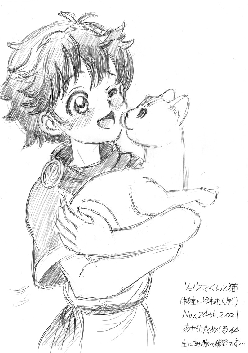 ラフ「リョウマくんと猫」(神達に拾われた男)