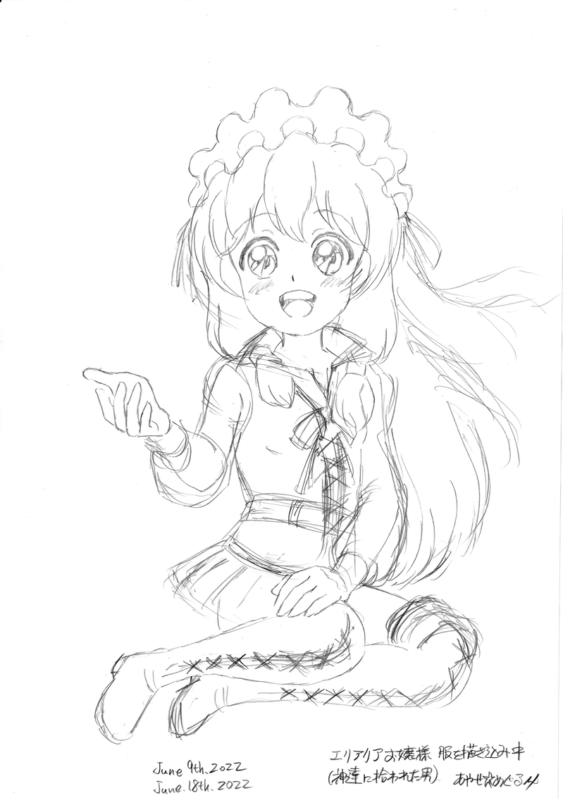 「座っているエリアリアお嬢様」ラフ (4)