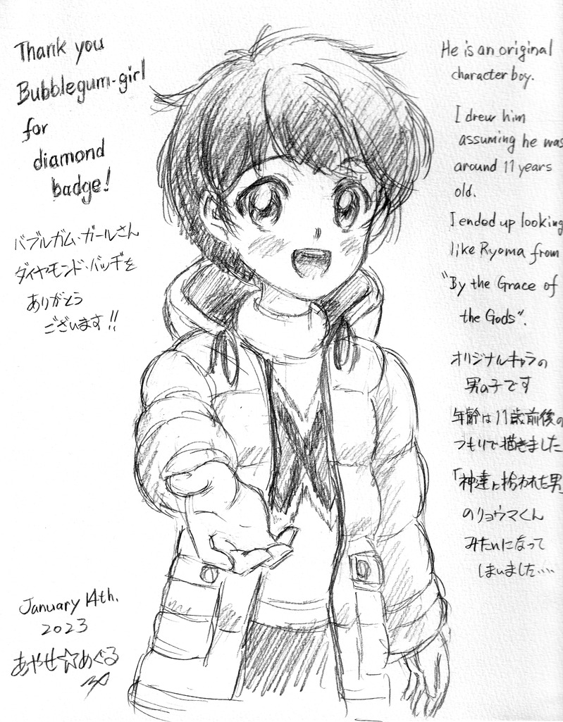 オリジナルキャラとして描いたのですが、ほとんど現代的な私服姿のリョウマくんみたいになってしまいました。