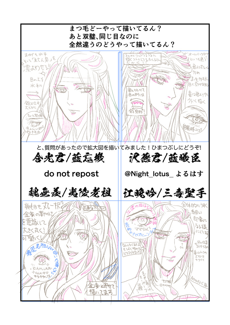 4人の「目の書き方」について聞かれて描いたもの