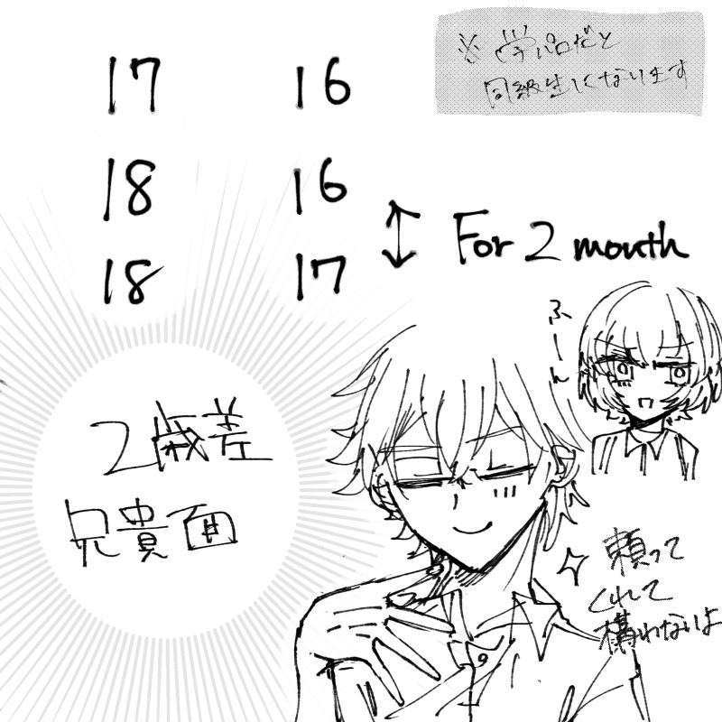 10no☆quiet followDOODLE今日の。これは自解釈の話ですが、対等な感じに見えて実は年齢差があるのたまらないし、星くんはわりと兄貴ヅラしてるのにちよこさんの方は私は一人っ子ですが?みたいな意識の差がありそうなところが最高。 ##アクタ Tap to full screen (size:1563x1563).Repost is prohibited Let's send reactions! freqpopularsnackothersPayment processing Replies from the creator Follow creator you care about!☆quiet follow 10noDOODLEかっこいい星くん需要 3 10noDOODLE死にてえ 2 10noDOODLE 10noDOODLE描き始め 10noDOODLE 14 10noDOODLE recommended works 10noDOODLEあくた〜じゅ(一部カプ絵注意)。あきらくん×ちよこさんを大変拗らせております 6 10noDOODLE吉岡 キャラデザがほんとにかわいい 10noDOODLEた〜じゅ 4 10noDOODLE吸血鬼ア 扉絵ネタにしがみついてる 10noDOODLE謎ブーム 3 10noDOODLE飛んできた 10noDOODLE別にメリットないのにね。 10noDOODLE清書が一向にできない身体になった(空いてるスペースがツイッターにもなった) 10noPROGRESS淡々と書き進めてしまっている 単純にこの2人が好きなんだな〜って我ながらでも思う