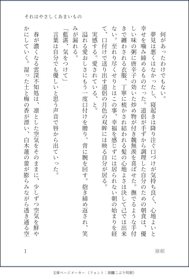tuguyori☆quiet followDONEあるおやつについて、ある日ある時のちいさなお話。雲深不知処で道侶してるけれど、アニメのふたりで書いています。 show all(+15 images) Tap to full screen (size:630x928).Repost is prohibited Let's send reactions! freqpopularsnackothersPayment processing Replies from the creator Follow creator you care about!☆quiet follow tuguyoriDONEあるおやつについて、ある日ある時のちいさなお話。雲深不知処で道侶してるけれど、アニメのふたりで書いています。 16 tuguyoriDONE『まそしのおやつ ふたつめ』 7