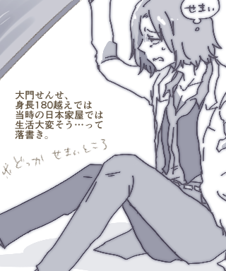 大門せんせ落書き。身長高いと日本家屋では生活しづらいだろうなと。