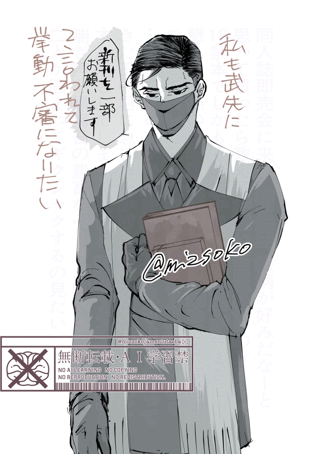 mizsoko☆quiet followDONEイベントに黒マスクの武市先生がいらしたと聞いて!!!!羨ましすぎてハンカチを噛み締めました2枚目はウォーターマーク代わりに妄想を敷き詰めたやつです クセになりそうです ##新武 show all(+1 images) Tap to full screen (size:660x930).Repost is prohibited Let's send reactions! freqpopularsnackothersPayment processing Replies from the creator Follow creator you care about!☆quiet follow mizsokoSPOILERめんどくさいオタクのお気持ちなので解釈違いもあると思います気持ちを整理したいだけのやつです※書き手は9/27更新分までのストーリーを進めています(9/28追記) 2080 mizsokoDONE2025/7/13新武プチオンリー『心身猛きこの縁』にて頒布予定の新刊のサンプルです一縷/A5/表紙口絵含む48p/一応全年齢戊辰聖杯戦争でお互いに遭遇した新武のやり取りから始まります・表紙レーザーカット加工、本文3ページ目が口絵・全年齢ではありますが、新武に体の関係があることを匂わす表現があります・流血・死体及び自死の表現があります・相変わらず妄想捏造甚だしいです 14 mizsokoDOODLE俺が(ふたりに)落ちた日※ネタバレあり復刻ありがとうおめでとう!!!!!!除湿必須! 湿っぽい巨大感情を見逃さないでください!!! mizsokoDOODLEおしぃさん※たなかくんの女装先生に着させようとして怒られたのでたなかくんに着てもらいましたクズだと思ってたけど下衆の間違いだったなって目で見られたいごめんなさい mizsokoDONE育て(たい)!マイリトルドラゴン/新武※年齢操作龍が出るなら墨龍先生出ねえとおかしくないですか?という気持ちだけで描きました育ててぇなちいこ先生…で田中君に触るなって言われたい頼む〜礼装だけで良いから新武の2人が見たいでももっと言うとぐだりょの復刻が来てほしい お願い事ばっかり2枚目は文字無しってだけです 2 mizsokoDONEイベントに黒マスクの武市先生がいらしたと聞いて!!!!羨ましすぎてハンカチを噛み締めました2枚目はウォーターマーク代わりに妄想を敷き詰めたやつです クセになりそうです 2